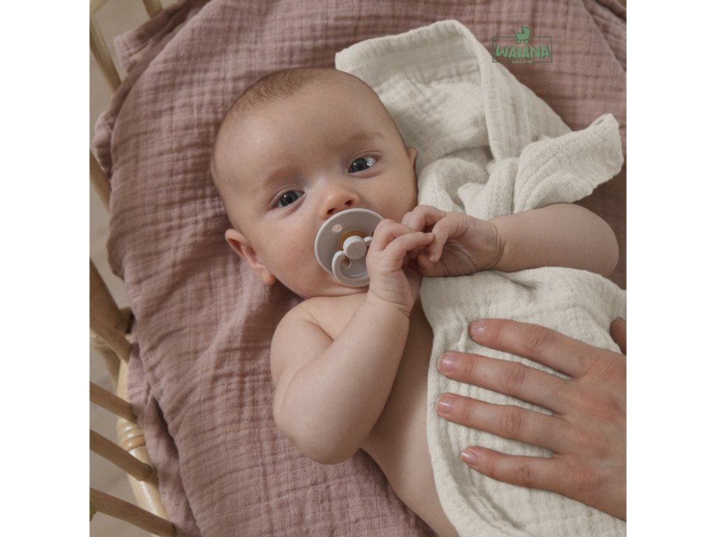BIBS je obľúbená dánska detská značka s viac ako 40 ročnou tradíciou, pre ktorú je typický minimalistický škandinávsky dizajn a široká farebná paleta. Okrem ikonických cumlíkov BIBS ponúka aj pestrý prémiový sortiment pre najmenšie deti. Zavinovačky sú jednou zo základných vecí každej detskej výbavičky. BIBS zavinovačky sú vyrobené z nariaseného mušelínu zo 100% organickej bavlny. Sú predprané a preto výnimočne mäkké, priedušné a ľahučké, každým praním sa ešte viac zjemňujú. Mušelín je najhebkejšia bavlnená látka, mimoriadne príjemná na kontakt s jemnou detskou pokožkou. Detská zavinovačka je ideálnym pomocníkom pri zavinutí, dojčení a spánku bábätka už od prvého dňa. Pri zavinutí sú bábätká akoby v pevnom objatí a cítia sa v bezpečí. Zavinutie do zavinovačky predlžuje spánok bábätka, blokuje u novorodencov tzv. Moorov reflex (náhle rozhodenie ručičkami) a následné zobudenie zo spánku. BIBS zavinovačky majú navyše unikátne zväčšené vešiakové pútko. Vďaka vlastnostiam mušelínu a praktickému pútku zavinovačku ľahko premeníte na užitočných pomocníkov:• podbradník• ľahká prikrývka na spanie • osuška pri kúpaní • podložka na spanie alebo prebaľovanie • plienka na odgrgnutie • zahalenie sa pri dojčení • maznáčikZavinovačka nie je určená na nosenie detí, nenahrádza šatku na nosenie.Údržba: Pranie na 40°C v práčke, jemný program. Praním môže dôjsť k zmene veľkosti a tvaru plienok o cca 10%. Nežehliť, nečistiť chemicky, nesušiť v sušičke. Čím viac sa mušelín perie, tým je mäkší a viac absorbuje vlhkosť. Používanie aviváže môže znižovať absorpčnú schopnosť.Zloženie: 100%-ná organická BIO bavlnaBalenie : 1 ks v praktickej mušelínovej taštičke Rozmery: 120 cm x 120 cm