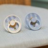 Renomovaná francúzska dizajnérka Glitter Power Club vytvorila pre BIBS exkluzívnu sadu potlačí a BIBS tak opäť prináša nový a svieži vietor do sveta detských produktov. Kolekcia BIBS Studio je inšpirovaná aktuálnymi trendami v dizajne, experimentuje s potlačou inovatívnym spôsobom a BIBS tak naďalej určuje trendy v rodičovstve. BIBS dobývajú celý svet. Jednoduché a štýlové. Sacia časť je vyrobená zo 100% prírodného kaučuku, ktorý je mimoriadne pružný a mäkký zároveň, odolný voči vytvoreniu trhlín a odštiepeniu malých kúskov. Cumlík je navrhnutý tak, aby nedráždil citlivú pokožku bábätka. Okrúhly krúžok s vetracími otvormi má klenutý tvar, takmer vôbec sa nedotýka pokožky okolo úst, tá preto zostáva kľudná, bez otlačkov a podráždení. Vďaka mäkučkému kaučuku a zabudovanému vzduchovému ventilu dieťa cumlík ľahko stláča a formuje v ústach, čím je zachovaný prirodzený vývin podnebia, ďasien a zúbkov detí. Prečo deti aj rodičia obľubujú cumlíky BIBS Colour? Extra ľahučký. Vďaka špeciálnemu klenutému tvaru krúžku je minimalizovaný dotyk cumlíka s pokožkou a nevznikajú otlačky a podráždenia. Guľatý / čerešničkový tvar sacej časti si často obľúbia aj deti, ktoré odmietajú iné tvary cumlíka. Dieťa saje len 100% prírodný bezpečný materiál – kaučuk vyrobený z miazgy stromu Hevea. Výnimočná chuť prírodného kaučuku, deti ho prirodzene uprednostňujú pred syntetickými materiálmi. Štýlový dizajn v mnohých farebných prevedeniach. Vyrobené v EU. Zloženie: Sacia časť: 100% prírodný kaučuk Ostatné časti: polypropylén (PP) potravinárskej kvality. Bez BPA, PVC, ftalátov a iných škodlivých látok. Vyrobené v Dánsku. V súlade s európskym štandardom EN 1400+A2. Veľkosti: BIBS Studio Colour cumlíky sú k dispozícii v 2 veľkostiach: Veľkosť 1: 0 – 6 mesiacov. Veľkosť 2: 6 – 18 mesiacov. Vekové odporúčanie veľkostí je len orientačné, každé dieťa môže mať iné potreby a preferencie.