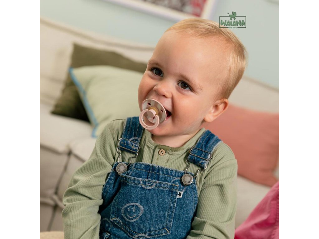 Renomovaná francúzska dizajnérka Glitter Power Club vytvorila pre BIBS exkluzívnu sadu potlačí a BIBS tak opäť prináša nový a svieži vietor do sveta detských produktov. Kolekcia BIBS Studio je inšpirovaná aktuálnymi trendami v dizajne, experimentuje s potlačou inovatívnym spôsobom a BIBS tak naďalej určuje trendy v rodičovstve. BIBS dobývajú celý svet. Jednoduché a štýlové. Sacia časť je vyrobená zo 100% prírodného kaučuku, ktorý je mimoriadne pružný a mäkký zároveň, odolný voči vytvoreniu trhlín a odštiepeniu malých kúskov. Cumlík je navrhnutý tak, aby nedráždil citlivú pokožku bábätka. Okrúhly krúžok s vetracími otvormi má klenutý tvar, takmer vôbec sa nedotýka pokožky okolo úst, tá preto zostáva kľudná, bez otlačkov a podráždení. Vďaka mäkučkému kaučuku a zabudovanému vzduchovému ventilu dieťa cumlík ľahko stláča a formuje v ústach, čím je zachovaný prirodzený vývin podnebia, ďasien a zúbkov detí. Prečo deti aj rodičia obľubujú cumlíky BIBS Colour? Extra ľahučký. Vďaka špeciálnemu klenutému tvaru krúžku je minimalizovaný dotyk cumlíka s pokožkou a nevznikajú otlačky a podráždenia. Guľatý / čerešničkový tvar sacej časti si často obľúbia aj deti, ktoré odmietajú iné tvary cumlíka. Dieťa saje len 100% prírodný bezpečný materiál – kaučuk vyrobený z miazgy stromu Hevea. Výnimočná chuť prírodného kaučuku, deti ho prirodzene uprednostňujú pred syntetickými materiálmi. Štýlový dizajn v mnohých farebných prevedeniach. Vyrobené v EU. Zloženie: Sacia časť: 100% prírodný kaučuk Ostatné časti: polypropylén (PP) potravinárskej kvality. Bez BPA, PVC, ftalátov a iných škodlivých látok. Vyrobené v Dánsku. V súlade s európskym štandardom EN 1400+A2. Veľkosti: BIBS Studio Colour cumlíky sú k dispozícii v 2 veľkostiach: Veľkosť 1: 0 – 6 mesiacov. Veľkosť 2: 6 – 18 mesiacov. Vekové odporúčanie veľkostí je len orientačné, každé dieťa môže mať iné potreby a preferencie.