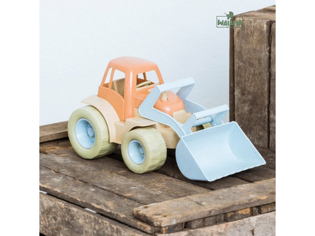 Veľký bager s čelným nakladačom a množstvom priestoru pre piesok alebo iné veci, ktoré treba premiestniť. Ponúka bohaté možnosti pre rozvoj detskej fantázie, hranie rolí a zmyslové skúmanie prírody pieskom a vodou. Hranie s bagrom posilňuje motorické zručnosti dieťaťa a koordináciu rúk a očí pri plnení a vyprázdňovaní čelného nakladača. V tlmených prírodných farbách. Má zaoblené tvary a je príjemný na dotyk. Je možné sa s ním hrať doma aj vonku.