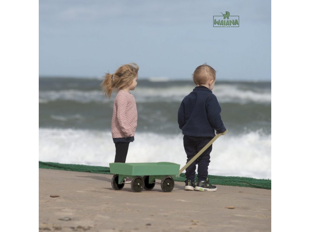 Skvelý ťahací vozík s priestorom na množstvo piesku a iných materiálov, ktoré je potrebné prevážať. Vytvára pre dieťa skvelé príležitosti na hru a fyzickú aktivitu. Hračka je vyrobená z recyklovaného rybárskeho a námorného vybavenia (zo sietí a lán, ktoré by inak skončili na dne oceánu).