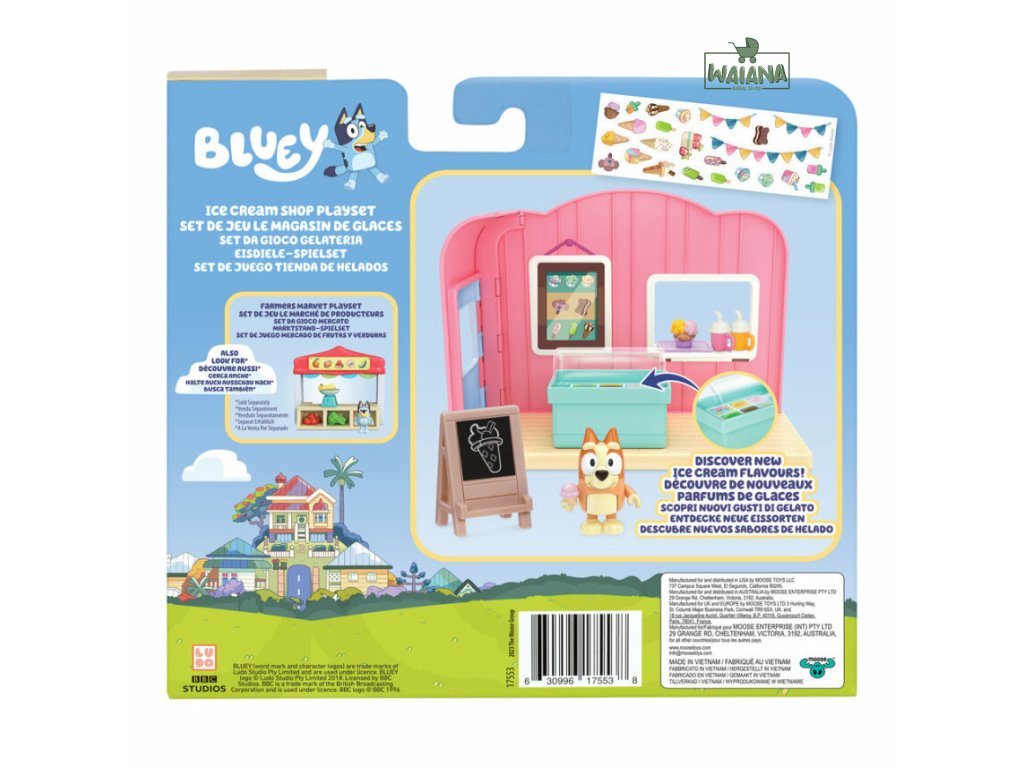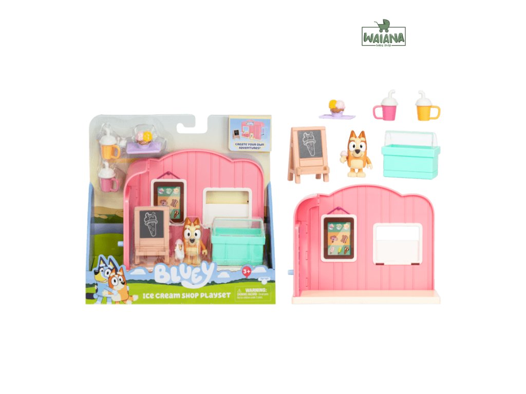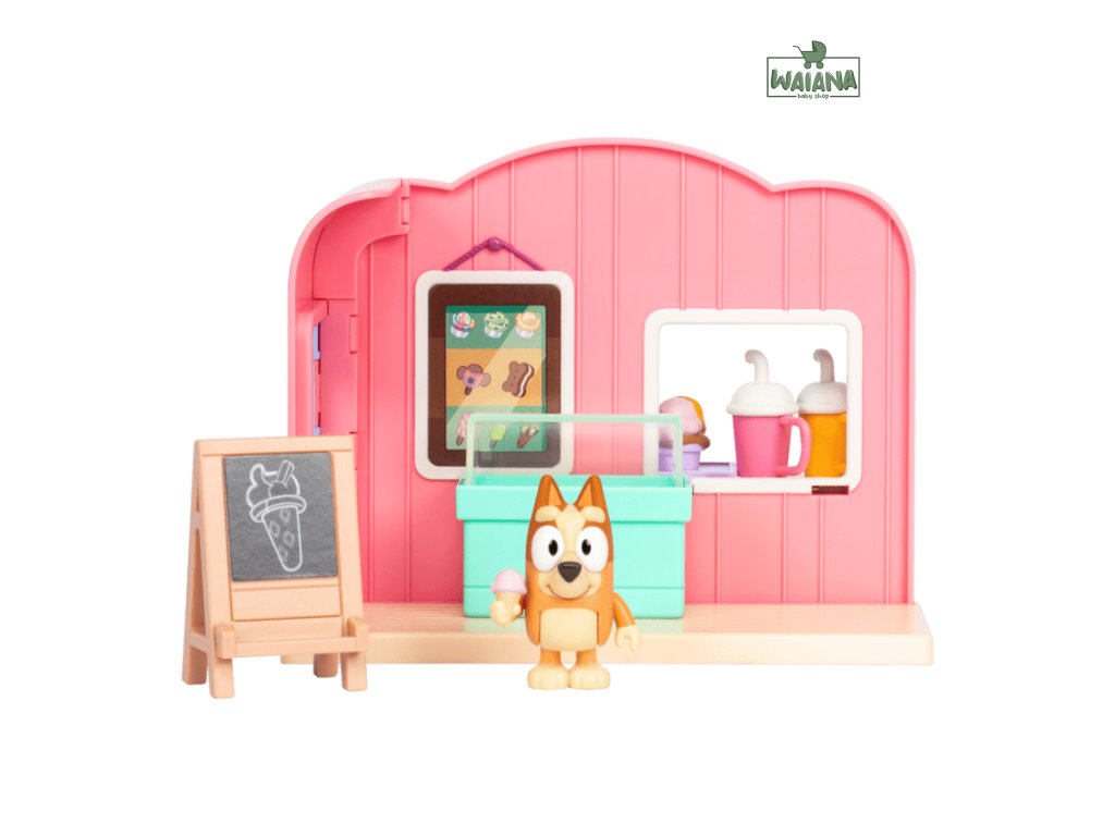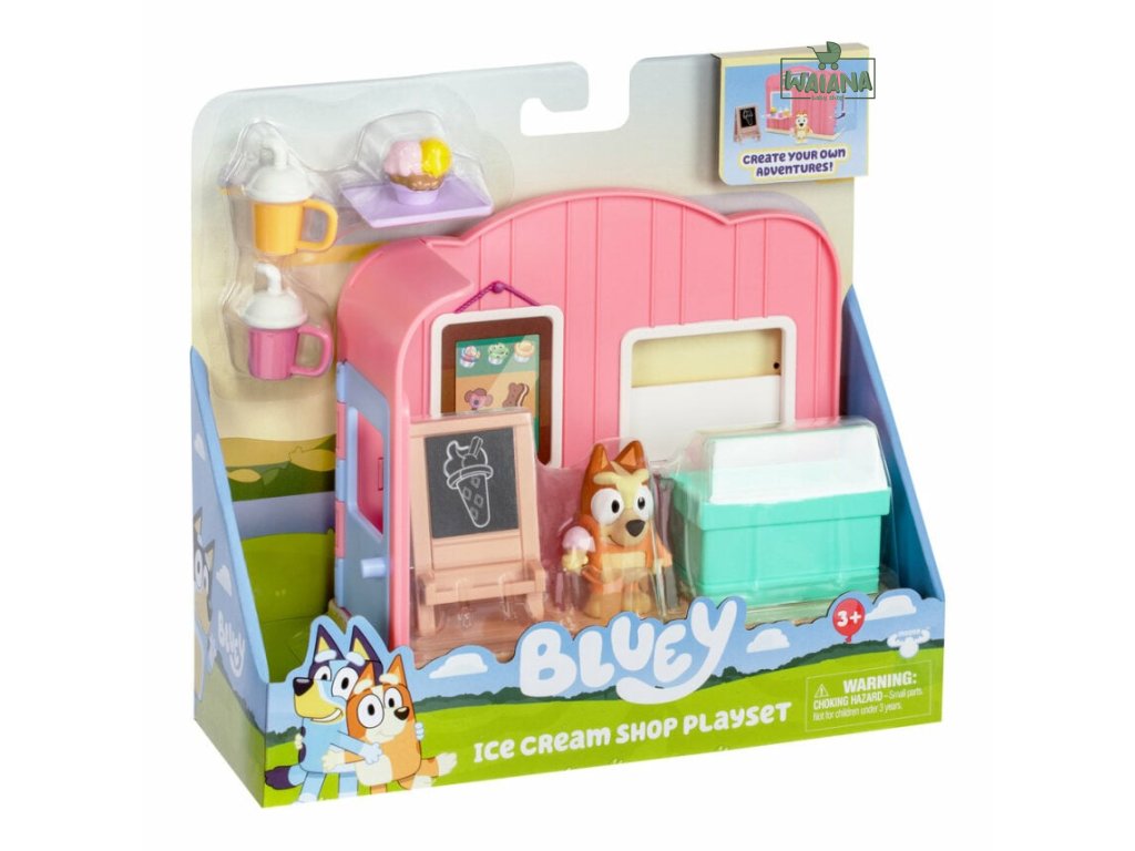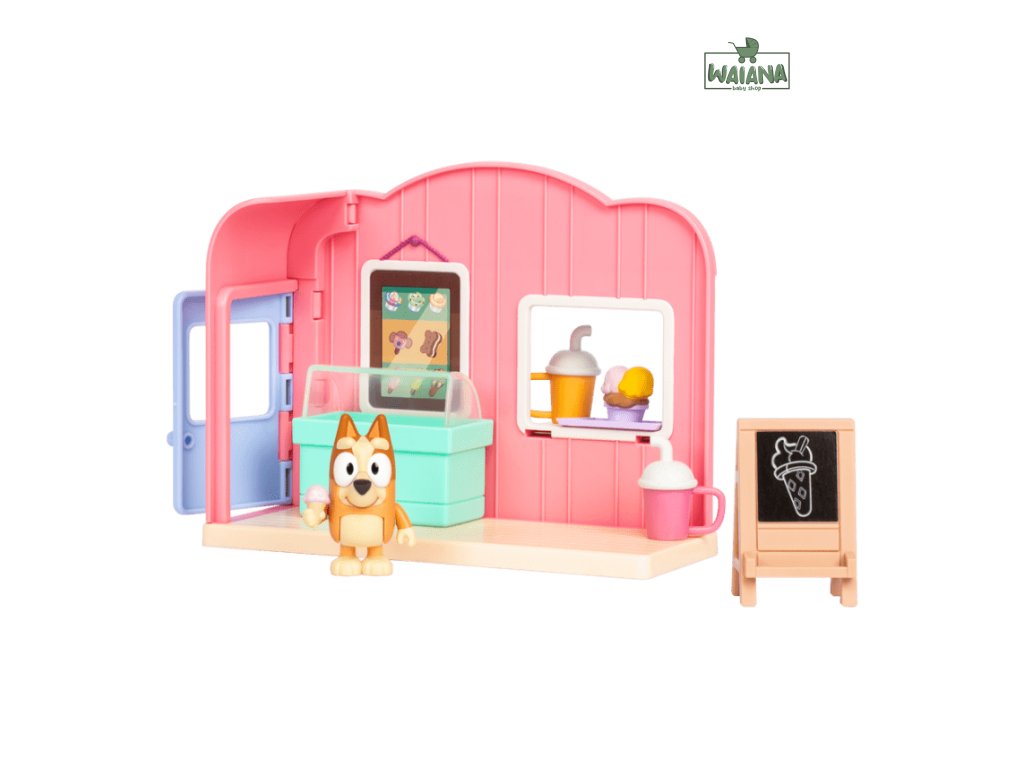 Obsahuje zmrzlináreň so všetkými potrebnými doplnkami a postavičky Bluey a jej rodiny.