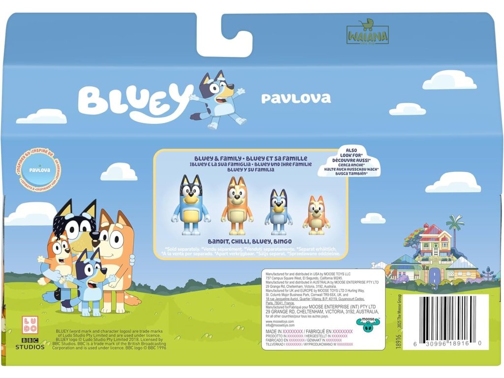 BLUEY Hrací set je vstupenkou do sveta, kde je hra tým najdôležitejším poslaním. Či už Bluey šmýka na šmýkačke, predáva v supermarkete, alebo trebárs v dodávke, váš malý objaviteľ bude nadšený. Darujte dieťaťu radosť z hry s postavami, ktoré tak dobre pozná a miluje!