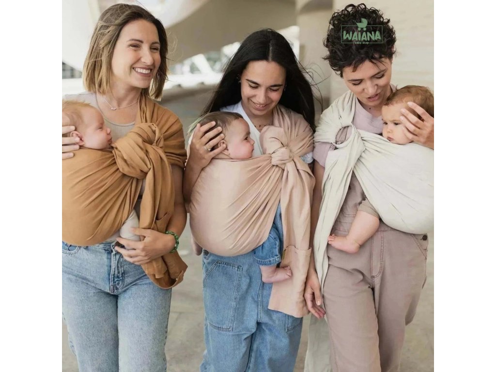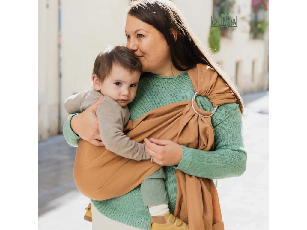 Jednoduché a Rýchle použitie: Je to Ring Sling bez viazania – stačí pretiahnuť látku cez krúžky a dotiahnuť.
