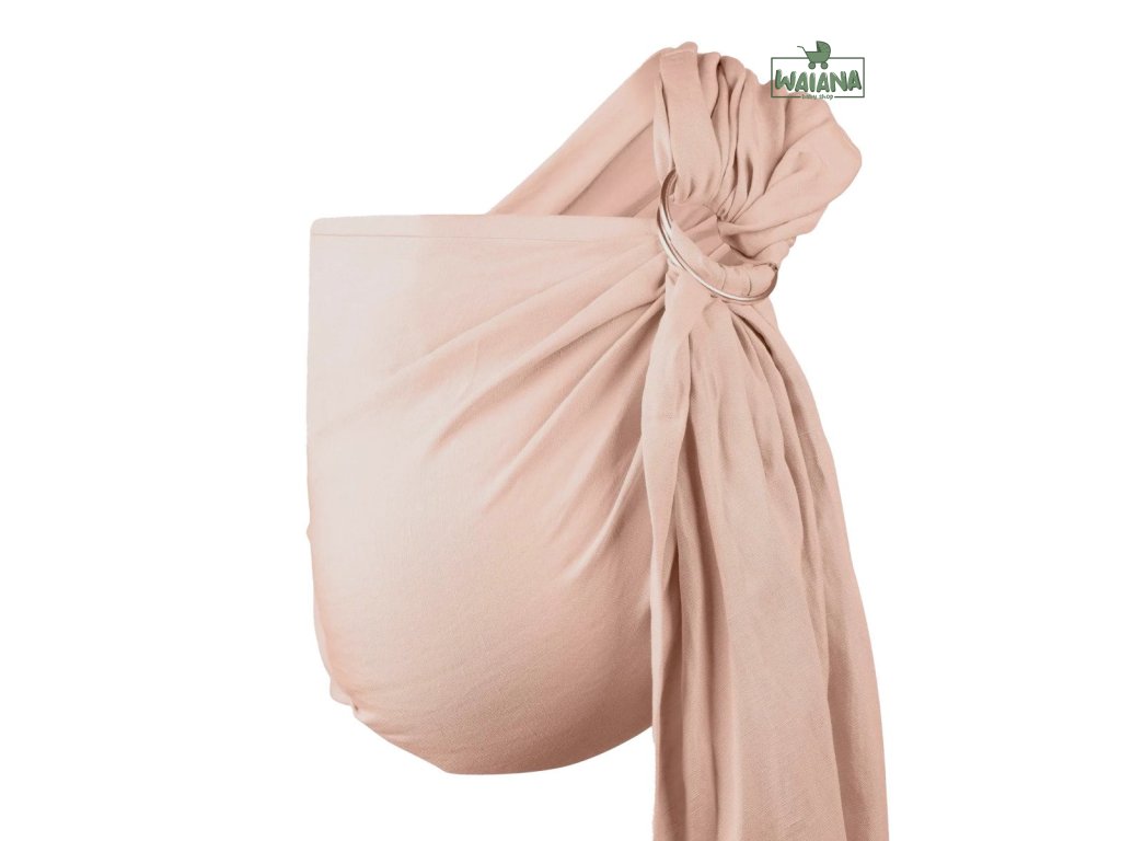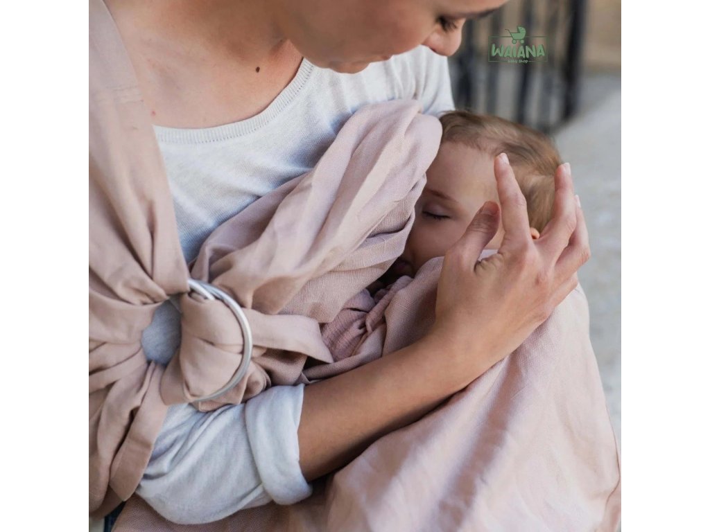 Jednoduché a Rýchle použitie: Je to Ring Sling bez viazania – stačí pretiahnuť látku cez krúžky a dotiahnuť.