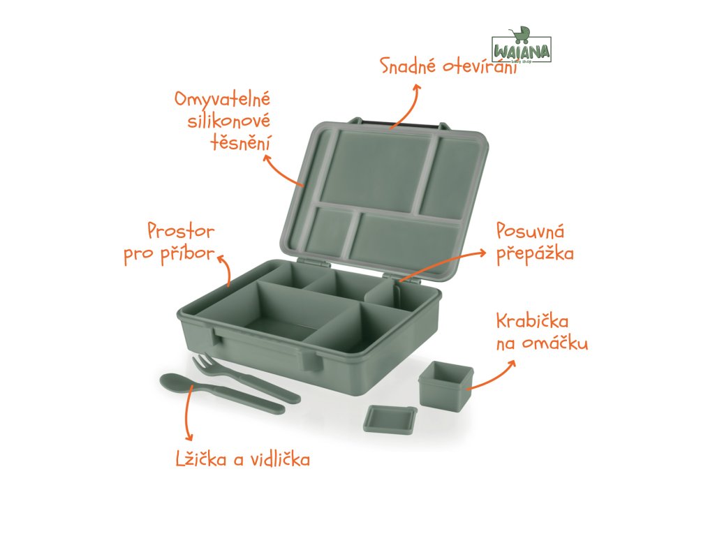Box je vyrobený z materiálov bez BPA, je odolný voči pádu a môžete ho bez obáv umývať v umývačke, použiť v mikrovlnnej rúre alebo uložiť do mrazničky.