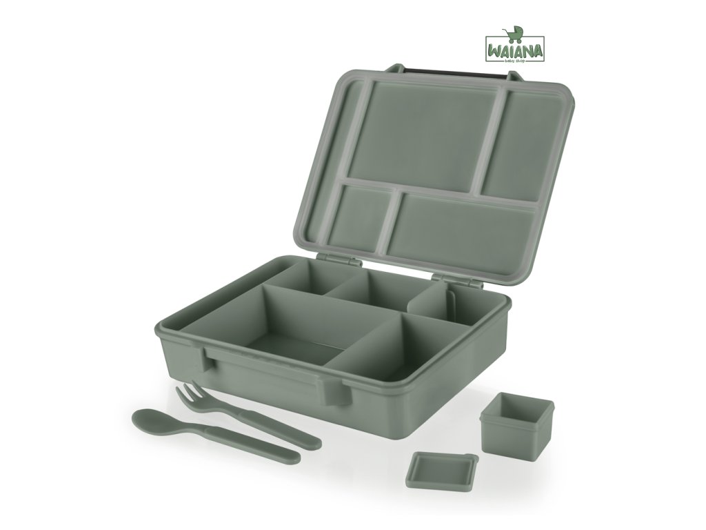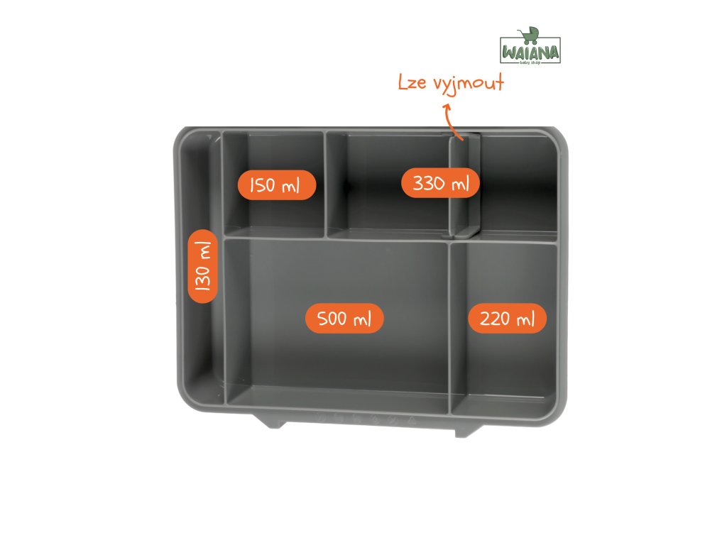 Vďaka viacerým priestranným priehradkám rôznych veľkostí (500 ml, 330 ml, 220 ml, 150 ml a 130 ml) môžete pripraviť pestrý a vyvážený obed so sebou. Malá nádobka na omáčku a integrovaná vidlička s lyžičkou sú samozrejmosťou.