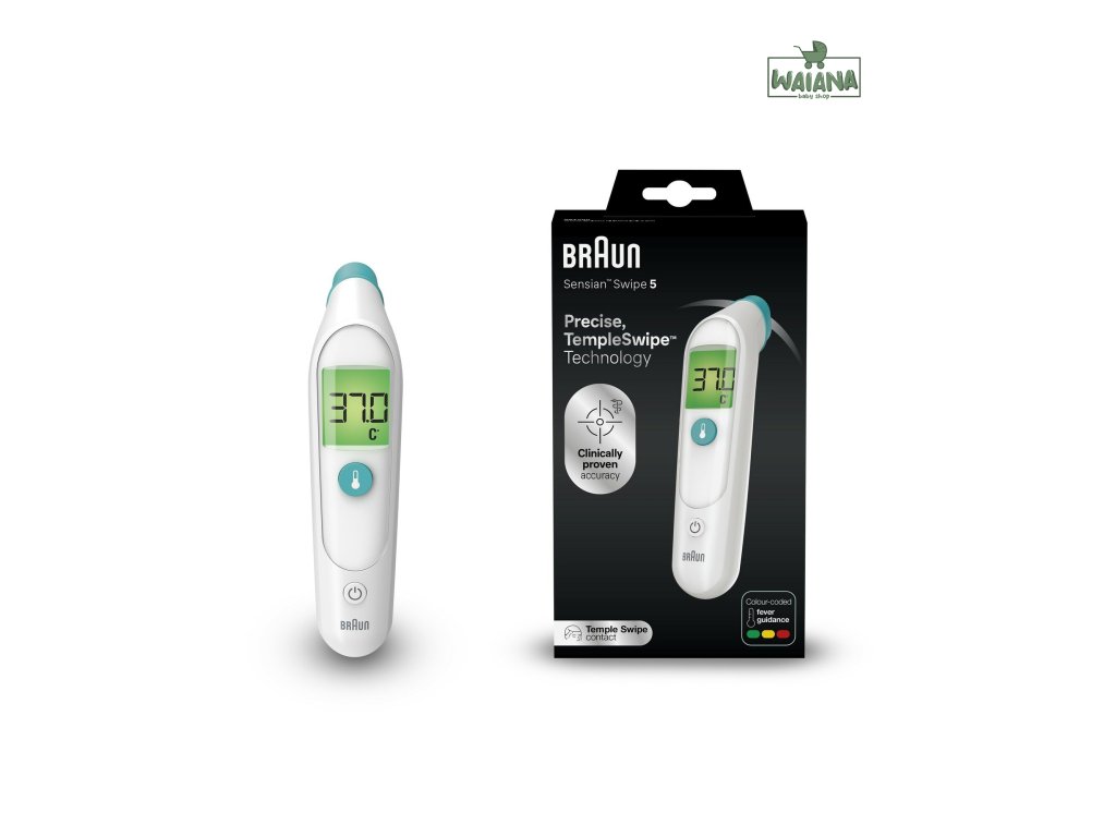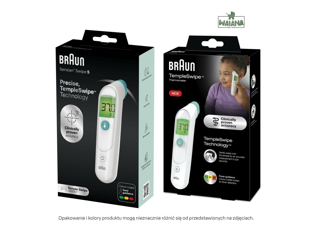 Teplomer TempleSwipe™ je univerzálne zariadenie, ktoré je vhodné pre všetkých členov rodiny, vrátane bábätiek. Ak hľadáte rýchly, jednoduchý a pohodlný spôsob merania teploty, Braun TempleSwipe™ je tou správnou voľbou. Výsledok získate už za 3 sekundy! Vďaka svojej unikátnej technológii poskytuje teplomer stabilné a spoľahlivé údaje pri každom meraní. Bol vyvinutý s využitím najnovších technológií a testovaný podľa prísnych medzinárodných noriem. Pre ochranu citlivého senzora je každý teplomer dodávaný s ochrannou meracou hlavicou, ktorú odporúčame nasadiť po každom po