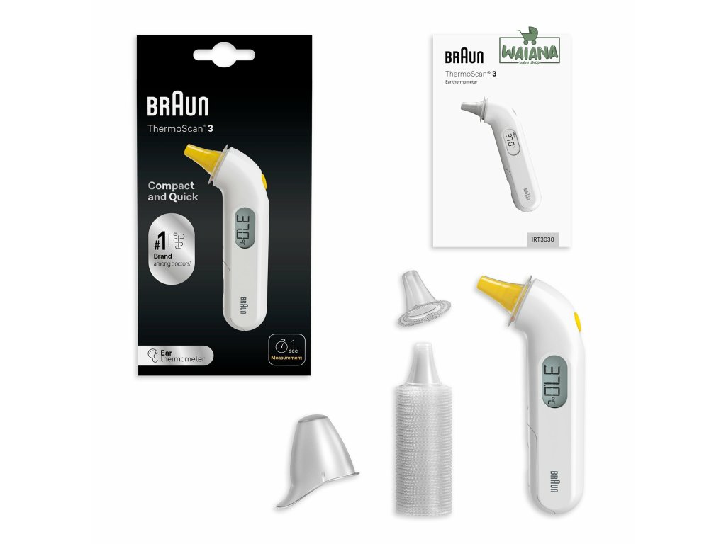 BRAUN ThermoScan 3 IRT3030 je spoľahlivý a praktický ušný teplomer, ktorý je ideálny pre rodičov, ktorí hľadajú rýchly, presný a bezpečný spôsob merania teploty svojich detí.