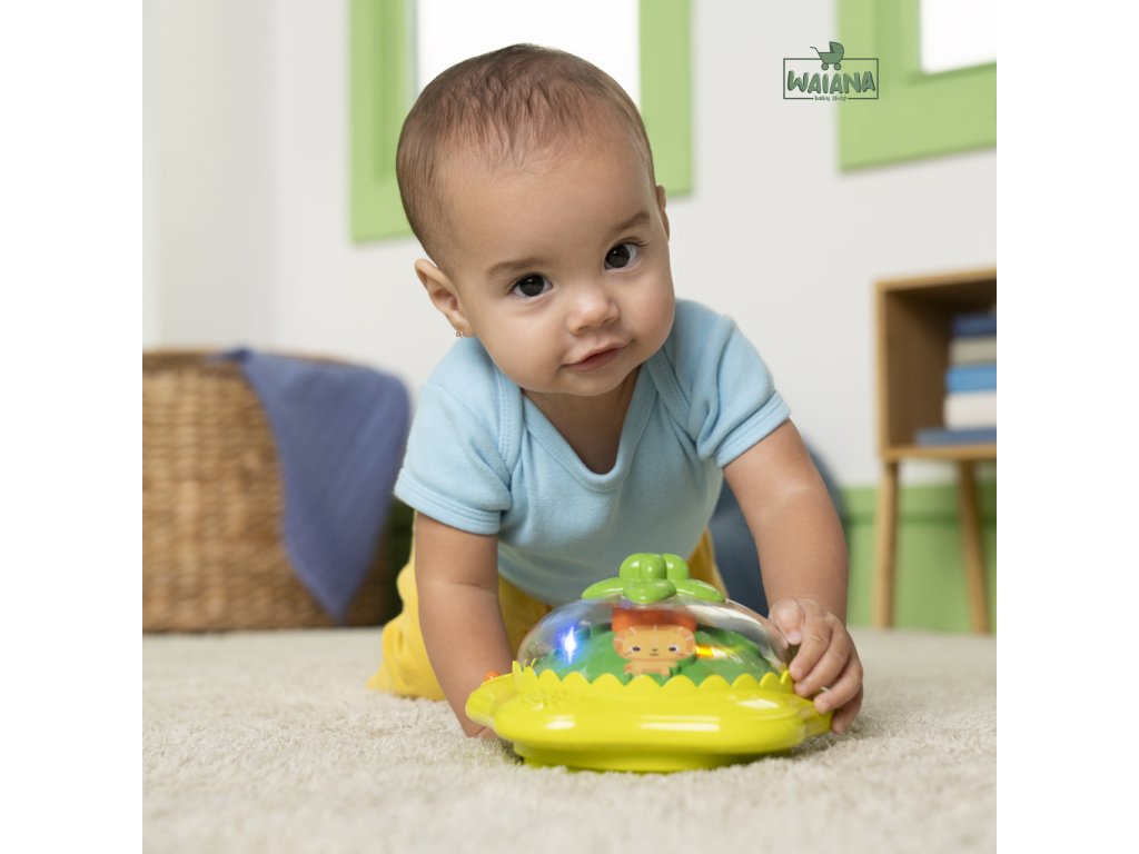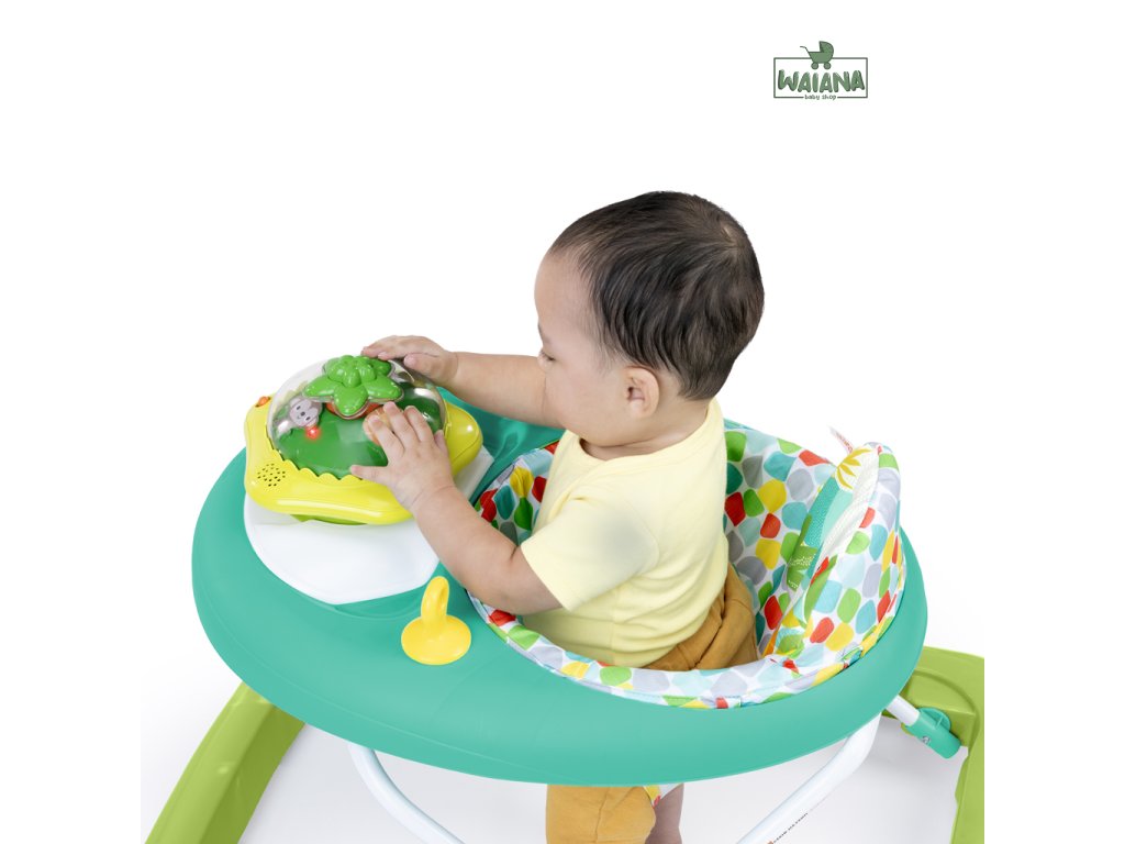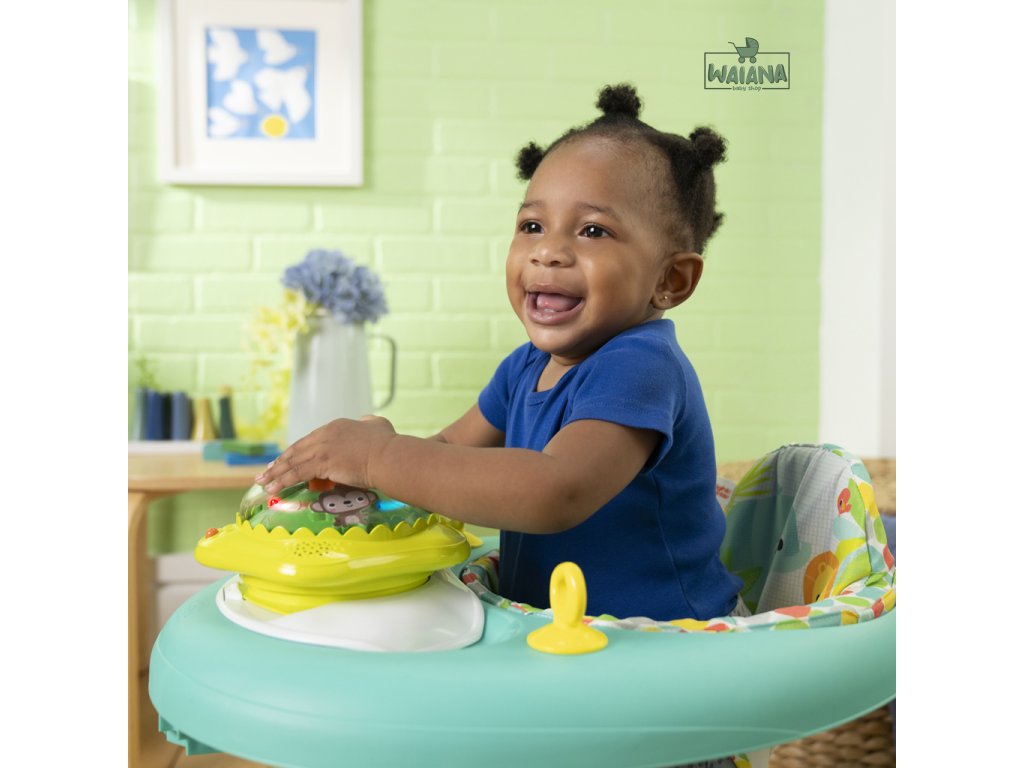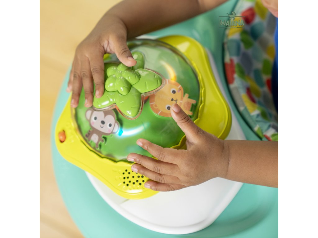 Rozhýbte prvé krôčiky svojho dieťaťa s farebným a zábavným chodítkom! Pomáha bábätkám rozvíjať prvé kroky, objavovanie a nezávislosť. Chodítko odmeňuje dieťatko svetielkami a zvukmi pri každom pokuse o krok a obsahuje aj odnímateľnú svietiacu a točiacu sa hračku - opičku, ktorú možno používať v dvoch režimoch ako súčasť chodítka alebo samostatne na hranie na podlahe. Obsahuje viac než 20 minút hudby, ktoré spolu so svetlami a pohybom pomáhajú rozvíjať hrubú a jemnú motoriku. Dieťa sa učí princípu príčina – následok stláčaním tlačidla na vrchu hračky. Pre ešte viac zábavy môžete pripojiť aj obľúbené hračky pomocou 2 upevňovacích krúžkov. Vďaka 3 nastaviteľným výškam rastie chodítko spolu s dieťaťom od 6 do 18 mesiacov (alebo kým nezačne samostatne chodiť). Mäkká sedacia podložka je prateľná v práčke a celý rám sa dá sklopiť pre jednoduché skladovanie či cestovanie. V žiarivom tropickom dizajne s ovocnými farbami a vzormi. Hračka vyžaduje 3 AA batérie (nie sú súčasťou balenia).