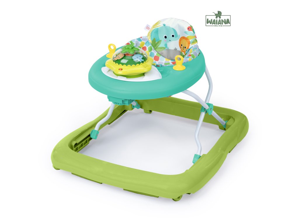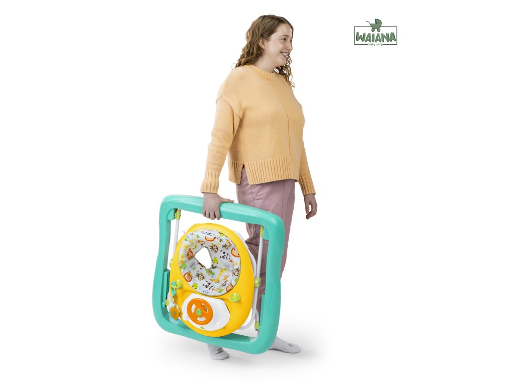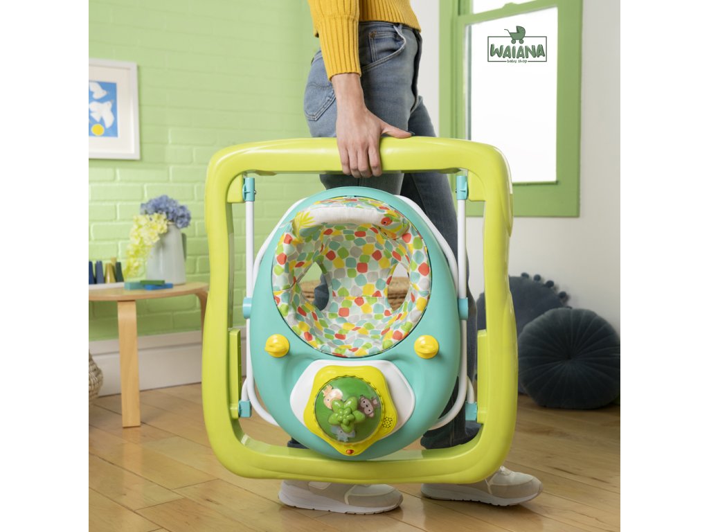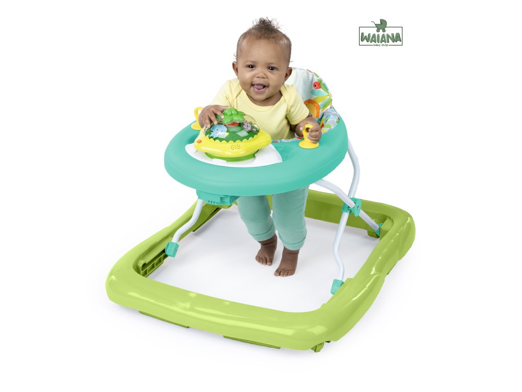 Rozhýbte prvé krôčiky svojho dieťaťa s farebným a zábavným chodítkom! Pomáha bábätkám rozvíjať prvé kroky, objavovanie a nezávislosť. Chodítko odmeňuje dieťatko svetielkami a zvukmi pri každom pokuse o krok a obsahuje aj odnímateľnú svietiacu a točiacu sa hračku - opičku, ktorú možno používať v dvoch režimoch ako súčasť chodítka alebo samostatne na hranie na podlahe. Obsahuje viac než 20 minút hudby, ktoré spolu so svetlami a pohybom pomáhajú rozvíjať hrubú a jemnú motoriku. Dieťa sa učí princípu príčina – následok stláčaním tlačidla na vrchu hračky. Pre ešte viac zábavy môžete pripojiť aj obľúbené hračky pomocou 2 upevňovacích krúžkov. Vďaka 3 nastaviteľným výškam rastie chodítko spolu s dieťaťom od 6 do 18 mesiacov (alebo kým nezačne samostatne chodiť). Mäkká sedacia podložka je prateľná v práčke a celý rám sa dá sklopiť pre jednoduché skladovanie či cestovanie. V žiarivom tropickom dizajne s ovocnými farbami a vzormi. Hračka vyžaduje 3 AA batérie (nie sú súčasťou balenia).