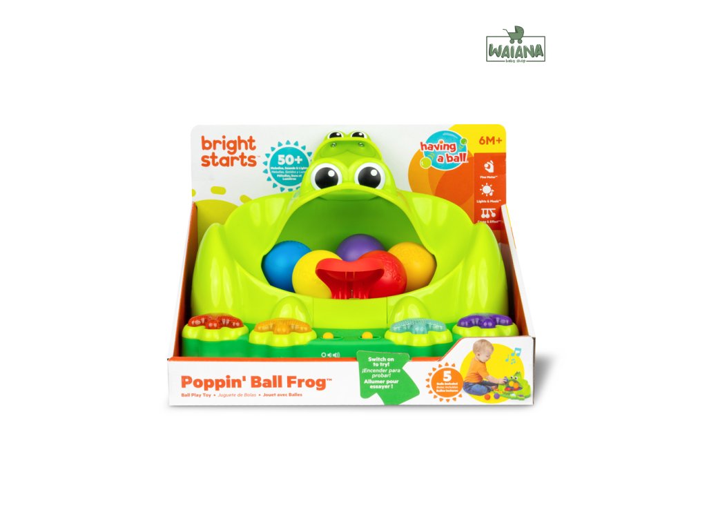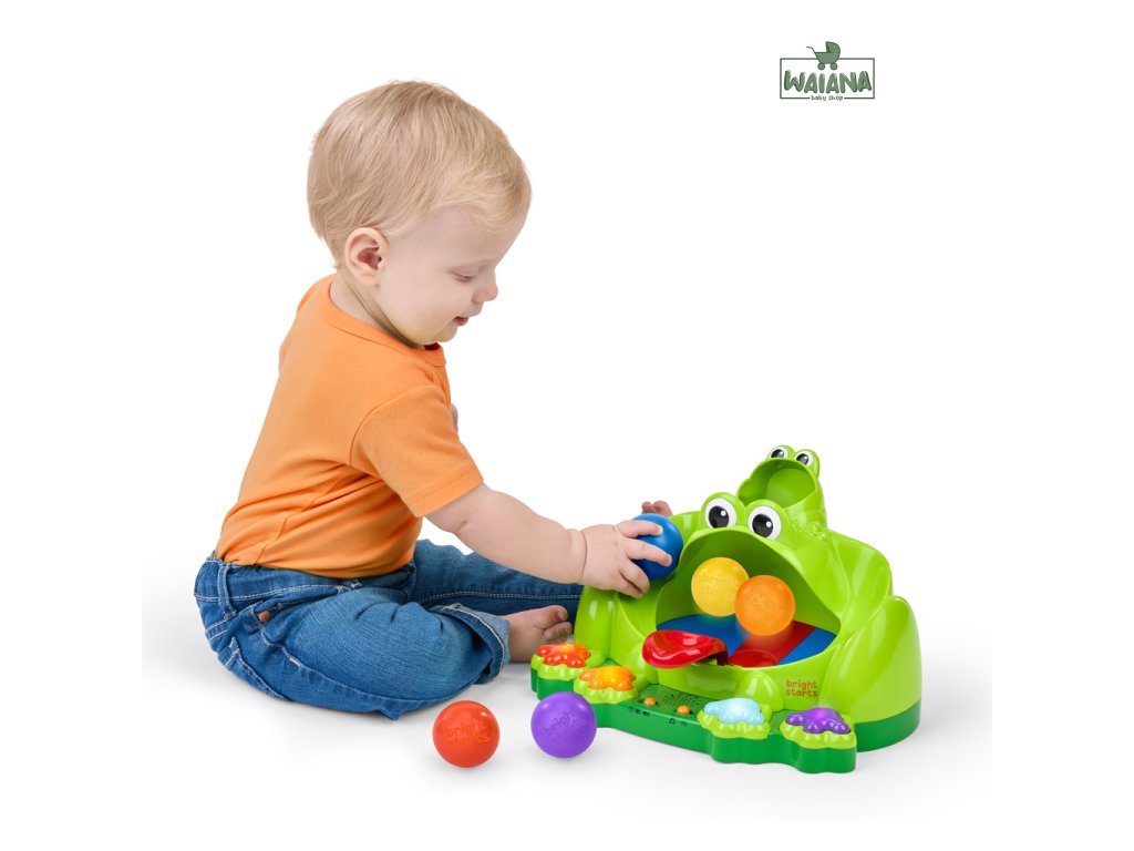- Skok do skvelej zábavy s hračkou Bright Starts Poppin’ Ball Frog; zoznámte svoje dieťa alebo batoľa so svetom hry s loptičkami, osvedčeným spôsobom ako rozvíjať zručnosti a zabávať sa!