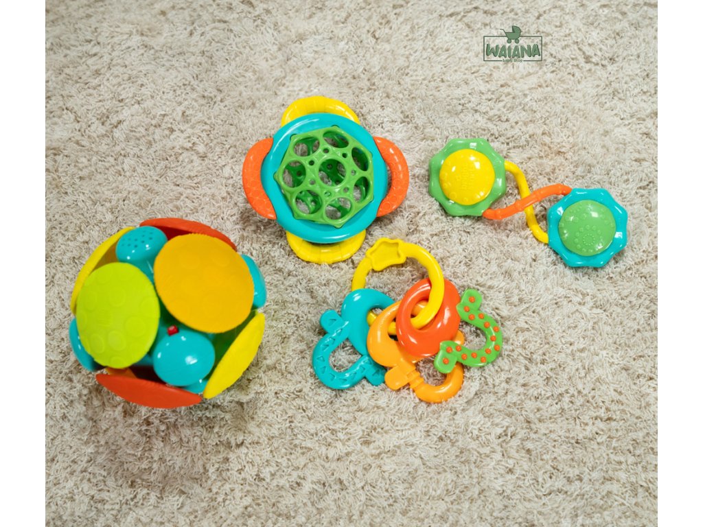 - Grasp & Teethe: Bábätká sa môžu zahryznúť do upokojujúcej úľavy s touto ľahko uchopitelnou hryzačkou! Viacero textúr masíruje citlivé ďasná a ikonický dizajn Oball je navrhnutý pre malé rúčky.