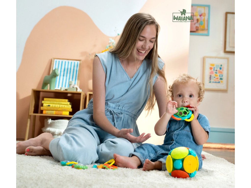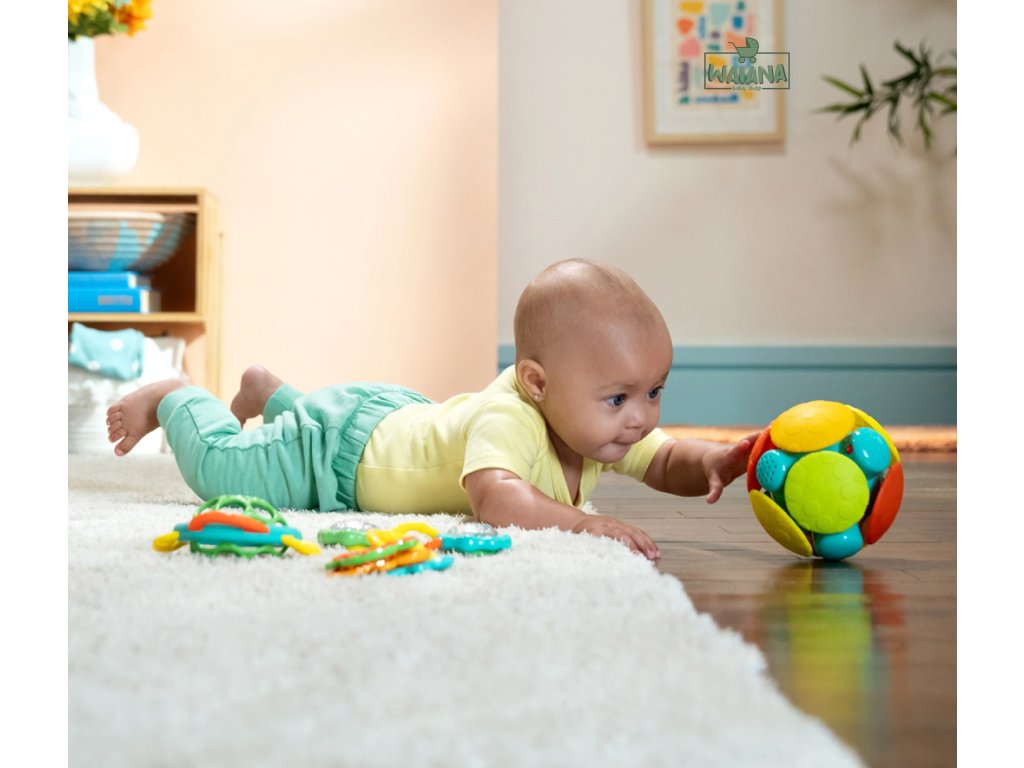 - Wobble Bobble: Zabavte sa s kolísavou guľou spolu s bábätkom! Táto elektronická guľa sa kotúľa rôznymi smermi, aby ju bábätko naháňalo, a pri každom zatrasení vydáva veselé zvuky. Rôzne textúry sa bábätku ľahko chytajú a držia, keď chytí túto kotúľajúcu sa hračku! Nabáda deti k plazeniu.