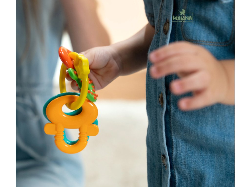 - License to Drool: Konečne kľúče k upokojeniu vášho malého hryzača! Viaceré textúry prinášajú úľavu pri prerezávaní zúbkov a tvary kľúčov s krúžkom umožňujú ľahké uchopenie tejto hryzačky.