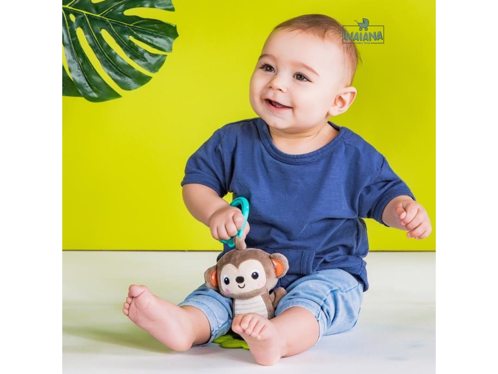 BRIGHT STARTS Hračka s melódiou na C krúžku Tug Tunes opica 0m+