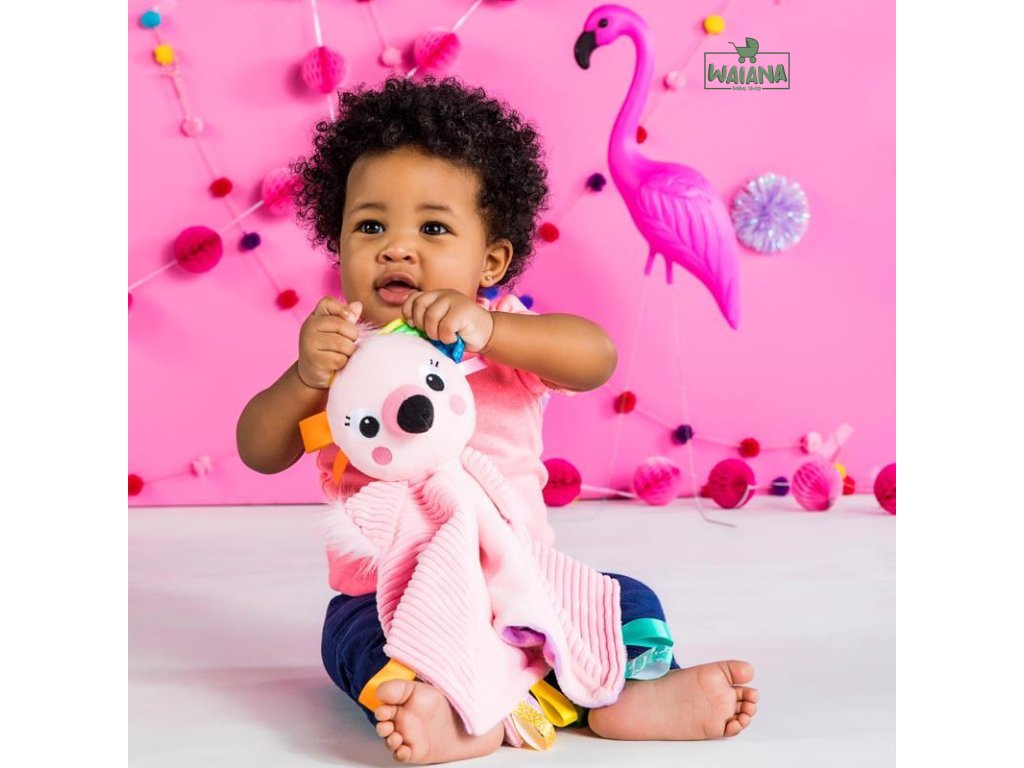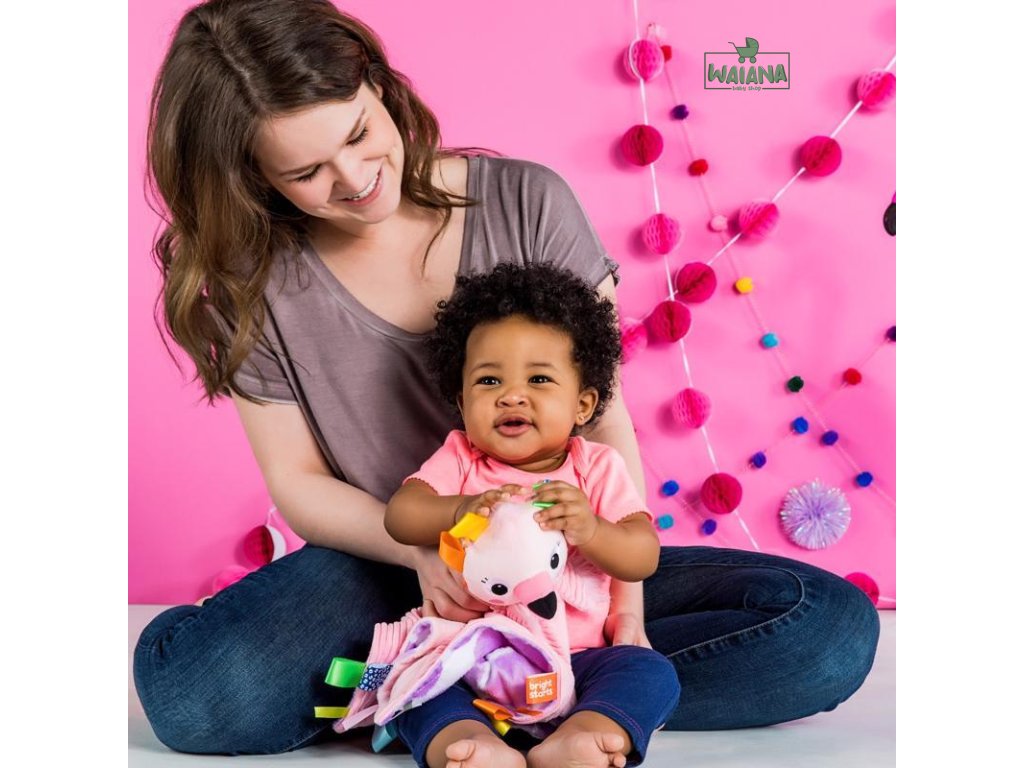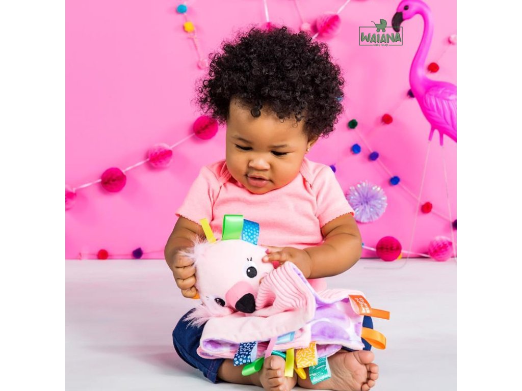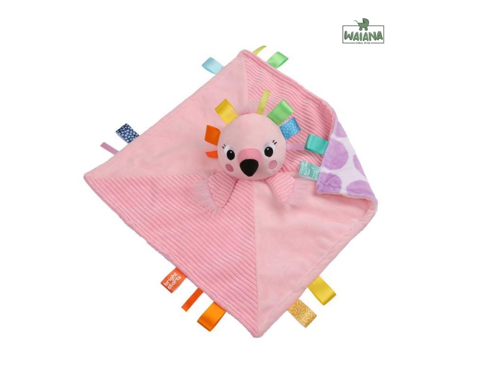 BRIGHT STARTS Maznacia dečka s hlavou Cuddle'n Tags plameniak 0m+