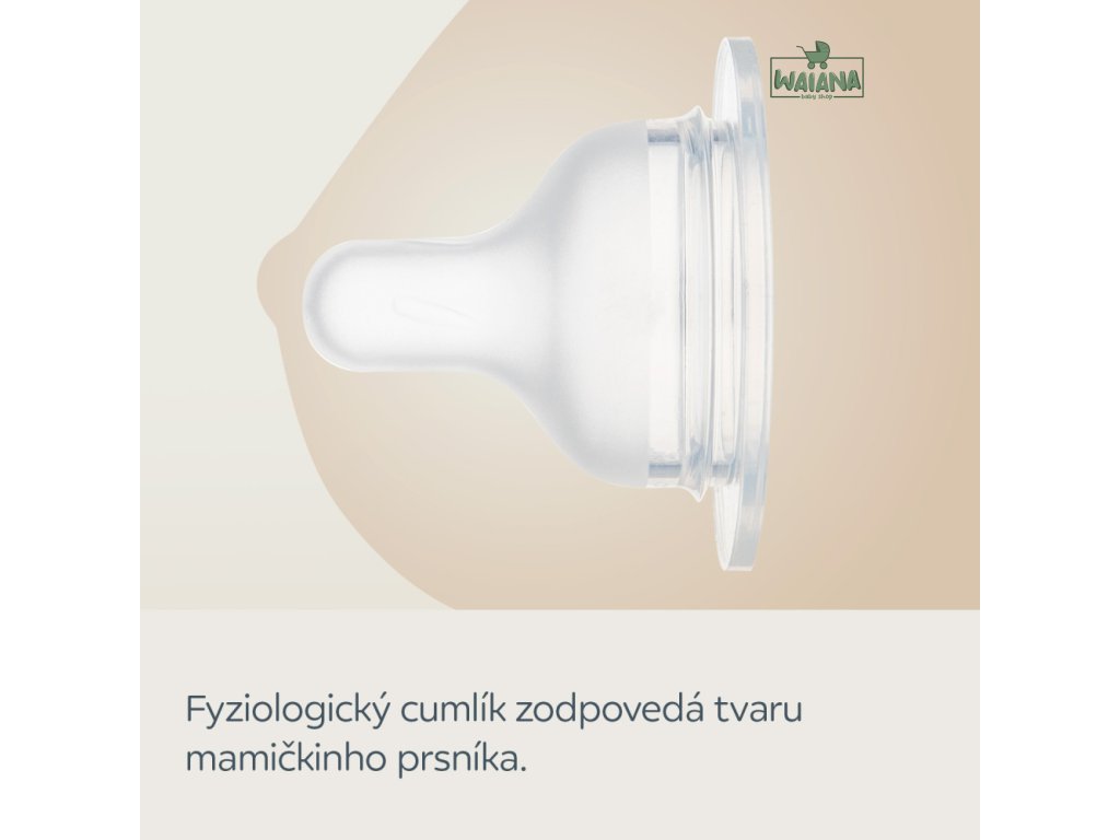 Fyziologický silikónový cumlík na fľašu S-Shape mini je mäkký a pripomína tvar matkinho prsníka, takže je ľahké kombinovať dojčenie a kŕmenie z fľaše. Vyrobené z hypoalergénneho matného silikónu bez zápachu - ľahké prijatie dieťaťom. Výstupky vo vnútri cumlíka zabraňujú jej zborteniu a zlepeniu pri pití. Vhodné pre opakovanú dezinfekciu/sterilizáciu. Silikónový cumlík k fľaši S-Shape mini sa odporúča pre bábätká od prvých dní života vďaka veľkosti cumlíka, mäkkosti silikónu a najpomalšiemu prietoku. Balenie obsahuje 2ks.