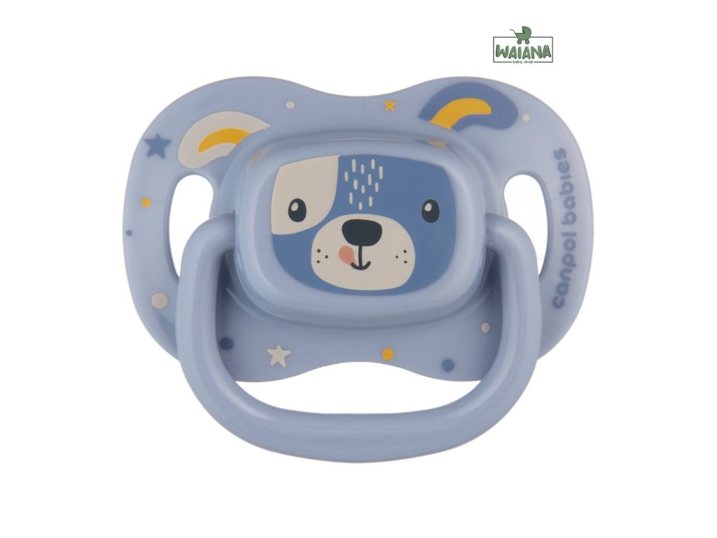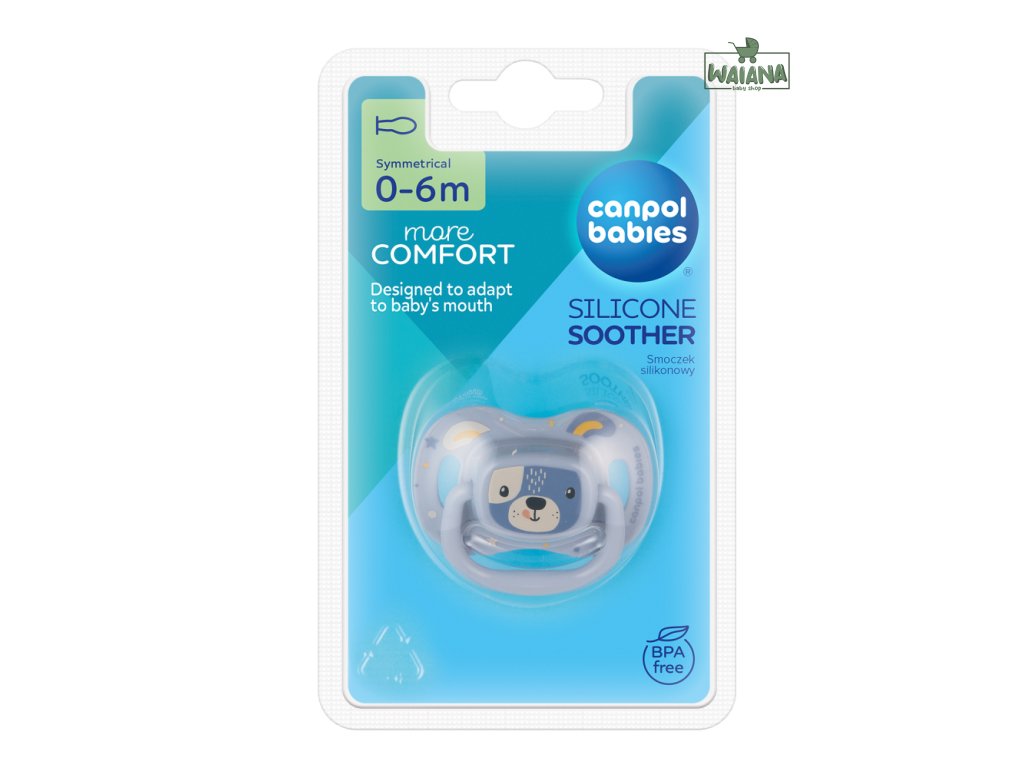 CANPOL BABIES Cumlík silikónový symetrický Cute animals 0-6m 1ks modrý