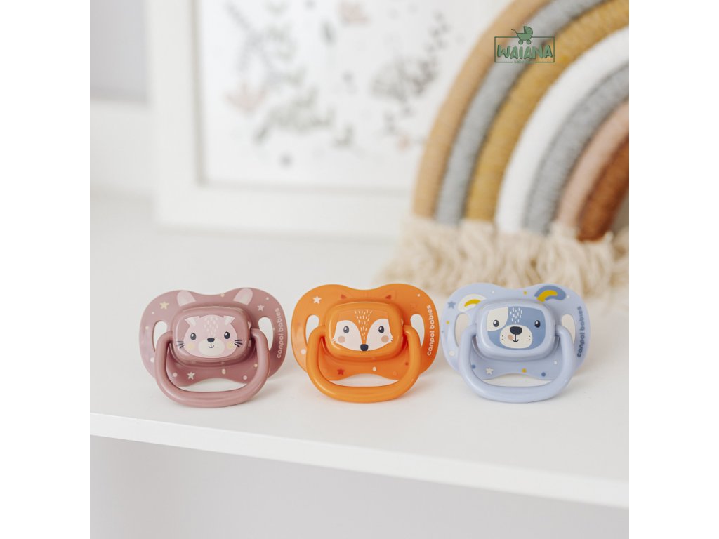 Cumlík z kolekcie Cute Animals vaše bábätko uvoľní a upokojí. Symetrický cumlík dobre padne do úst dieťaťa bez ohľadu na to ako je umiestnený a jeho tvar je považovaný za najviac fyziologický. Špička je vyrobená z najkvalitnejšieho, bezpečného a jemného silikónu. Je bez chuti a zápachu, čo bábätku uľahčuje prijatie cumlíka.