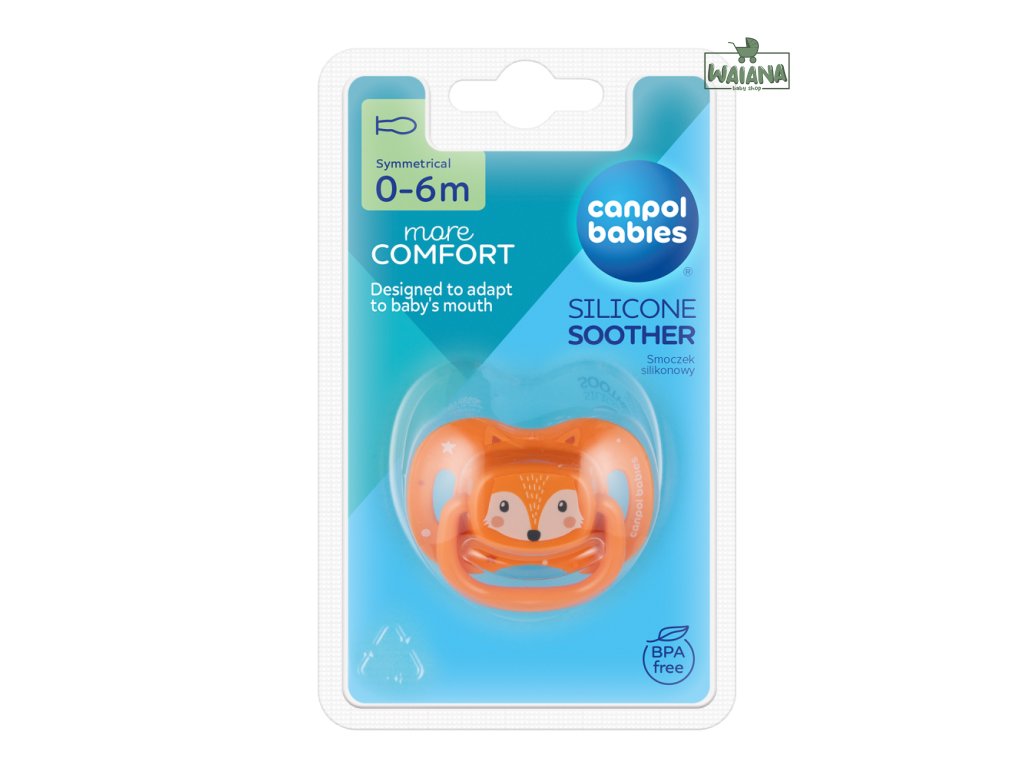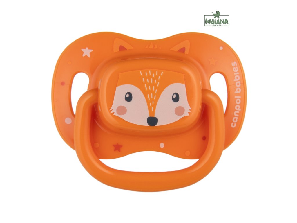 CANPOL BABIES Cumlík silikónový symetrický Cute animals 0-6m 1ks oranžový