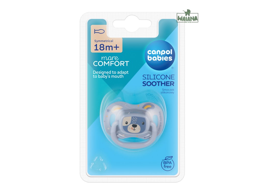 CANPOL BABIES Cumlík silikónový symetrický Cute animals 18m+ 1ks modrý