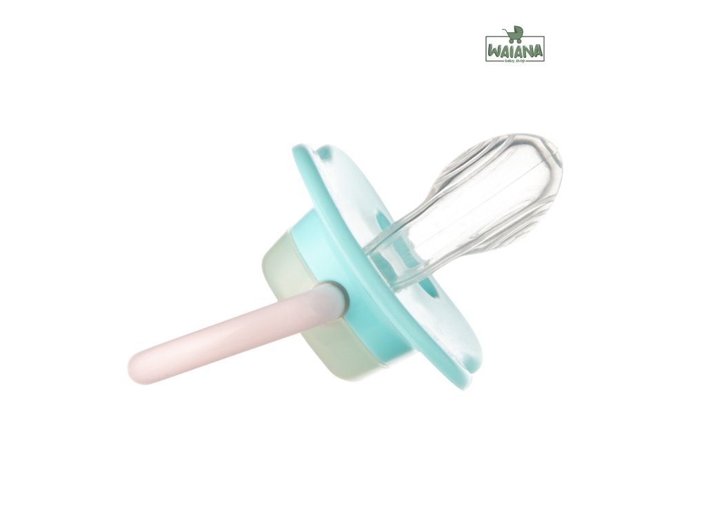 Vetracie otvory v štíte zaisťuje voľné dýchanie a prehĺtanie slín. Špeciálne navrhnutý tvar štítu minimalizuje otlačky cumlíka na jemnú tvár dieťaťa a zabraňuje podráždeniu. Praktický úchyt na cumlíku umožňuje pripevniť cumlík a uľahčuje jeho podanie dieťaťu. Stred cumlíka v tme svieti, čo uľahčuje nájdenie cumlíka v noci.