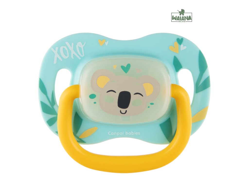 Canpol babies symetrický silikónový cumlík 18m+ EXOTIC ANIMALS (koala) je pevný a odolný voči deformácii. Bez BPA. Tento cumlík je bezpečný a ľahko sa udržuje v čistote – je možné ho dezinfikovať vo vriacej vode a v sterilizátore. Symetrický cumlík sa dobre prispôsobí ústam dieťaťa bez ohľadu na spôsob jeho umiestnenia a jeho tvar je považovaný za najfyziologickejší, podporuje zachovanie prirazeného rytmu satia a správny vývoj reči. Cumlík odporúčaný pre deti vo veku 0-6 mesiacov. Canpol babies symetrický silikónový cumlík 18m+ EXOTIC ANIMALS (koala) je dostupný v niekoľkých jedinečných designoch a rôznych veľkostiach – rastie s dieťaťom.