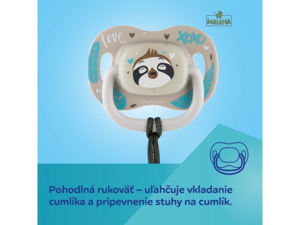 Cumlík Canpol babies Exotic Animals vaše bábätko uvoľní a upokojí. Symetricky tvarovaná sacia časť je vyrobená z najkvalitnejšieho, bezpečného a jemného silikónu, bez zápachu a chuti, čo dieťati uľahčuje prijatie cumlíka.