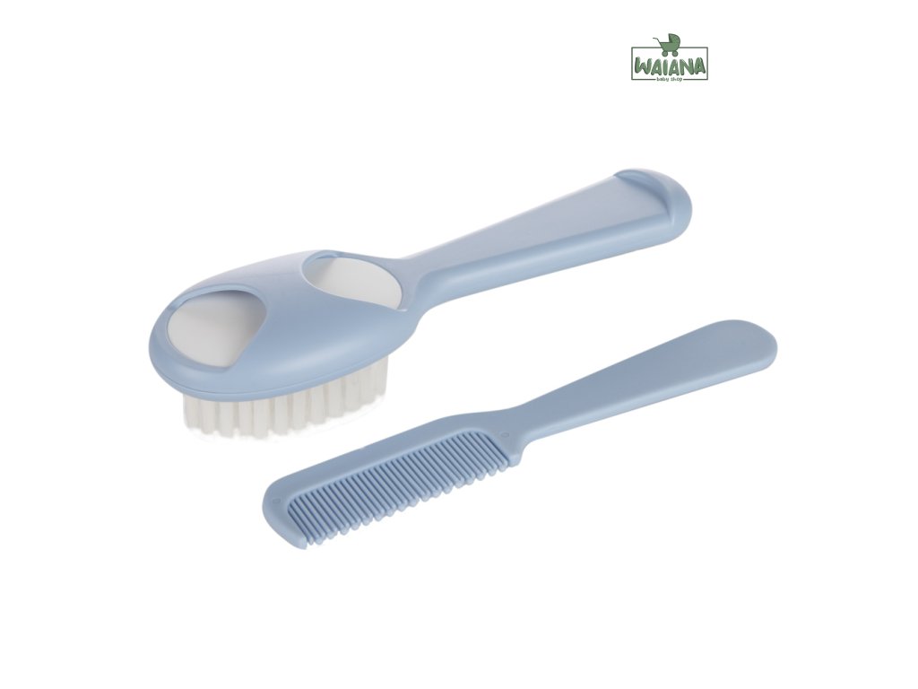 Detská kefa a hrebeň predstavujú dokonalú súpravu na česanie prvých vlasov a masírovanie hlavy dieťaťa. Zuby hrebeňa sú zaoblené, aby nedráždili citlivú pokožku dieťaťa, zatiaľ čo syntetické štetiny kefy zaručujú bezpečnú a príjemnú starostlivosť o mäkké detské vlasy. Ergonomický tvar pomôcok uľahčuje pohodlné používanie a špeciálne puzdro na hrebeň pomôže zachovať poriadok. Súprava je k dispozícii v troch pastelových farbách.