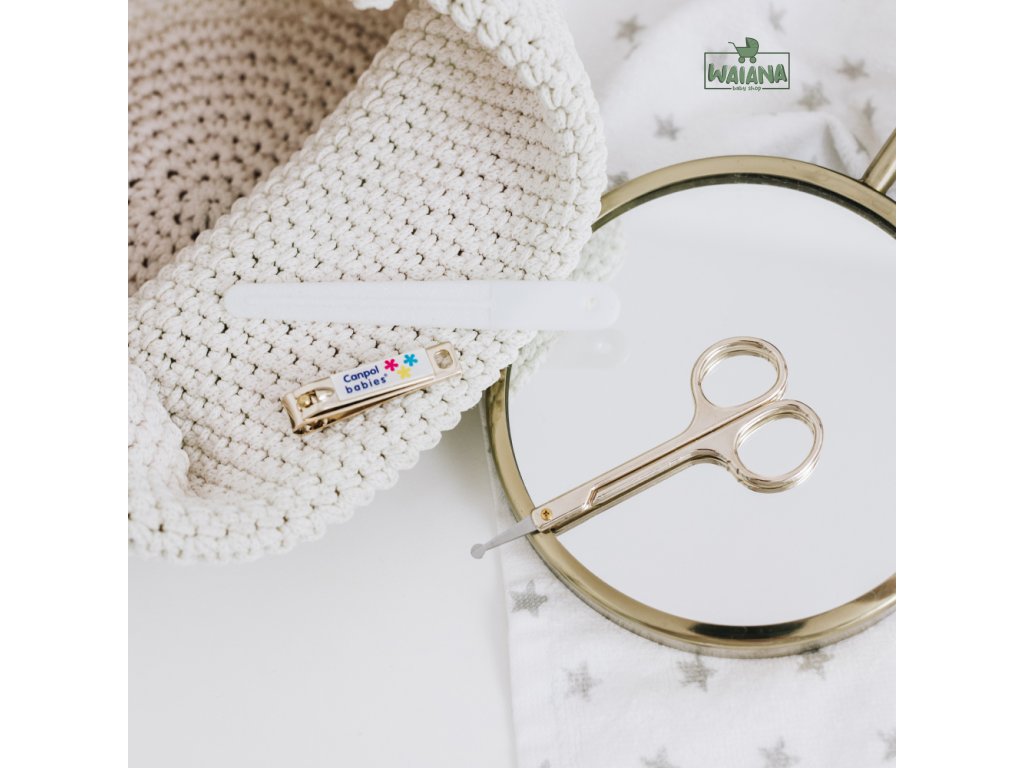 Praktická manikúra na starostlivosť o nechty dojčiat a detí umožňuje rýchlo a bezpečne ostrihať nechty dieťaťa. Nožnice majú tenké zaoblené čepele, ktoré minimalizujú riziko poranenia. Klieštiky umožňujú pohodlné skracovanie nechtov a špeciálne tvarovaný pilník na nechty vytvaruje ich tvar.