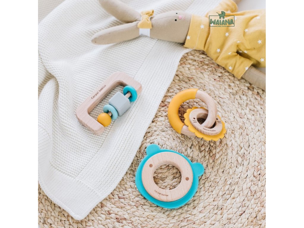 Vyrobené z materiálov s rôznou štruktúrou a úrovňou tvrdosti - silikónové a drevené prvky - skvelé riešenie pre upokojenie boľavých ďasien dieťatka a neustálu potrebu hryzenia.