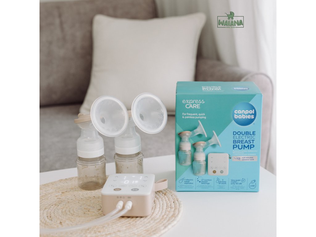Dvojitá elektrická odsávačka materského mlieka ExpressCare sa hodí pre všetky antikolikové fľaše so širokým hrdlom a štandardné fľaše Canpol babies.