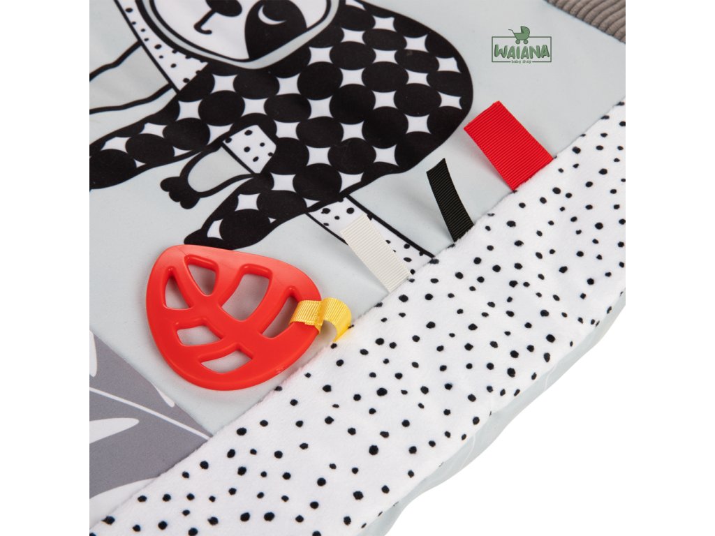 Senzorická edukačná podložka Canpol babies na ležanie na brušku z kolekcie BabiesBoo je bezpečný a príjemný spôsob, ako udržať dieťa v pohybe a umožňuje rodičovi mať chvíľku pre seba alebo robiť domáce práce. Podložka je výnimočne veľká a mäkká - 130 x 95 cm poskytne vášmu najmenšiemu pohodliu a bezpečiu. Vzdelávacia podložka Canpol babies sa ľahko skladá, má pohodlnú rukoväť, vďaka ktorej sa ľahko prenáša, takže môžete vytvoriť detský priestor, kdekoľvek budete potrebovať. Veľké zrkadlo povzbudzuje a predlžuje lezenie na brušku, počas ktorého môže bábätko zakaždým preskúmať rôzne časti podložky. Veľké množstvo zmyslových prvkov zapája detské zmysly: zrak, sluch a hmat. Rôzne textúry materiálov, kontrastné farby a vzory a jemné zvuky sú skvelou zábavou pre rozvíjajúce sa zmysly vášho bábätka od prvých okamihov života. Senzorická náučná podložka Canpol babies pomôže zaistiť správnu motoriku každého dieťaťa. Podložku je možné prať v práčke.