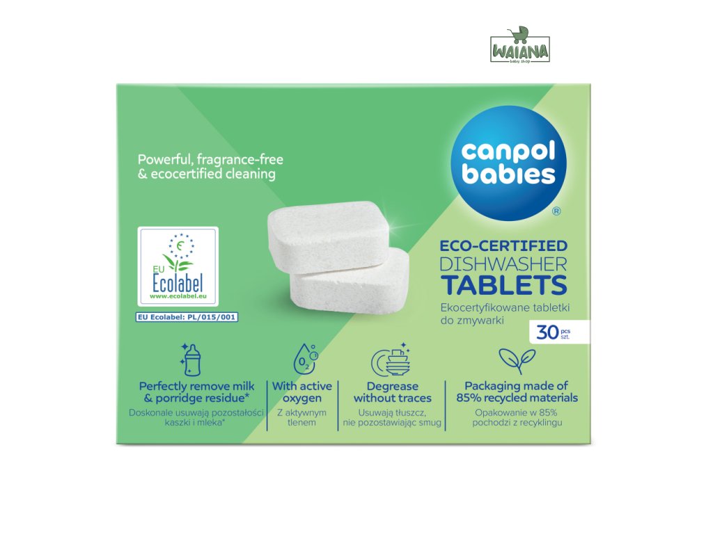 Ekologicky certifikované tablety do umývačky Canpol babies sú vynikajúcou voľbou pre rodičov, ktorí hľadajú účinné a pritom bezpečné a ekologické riešenie pre každodenné umývanie riadu.