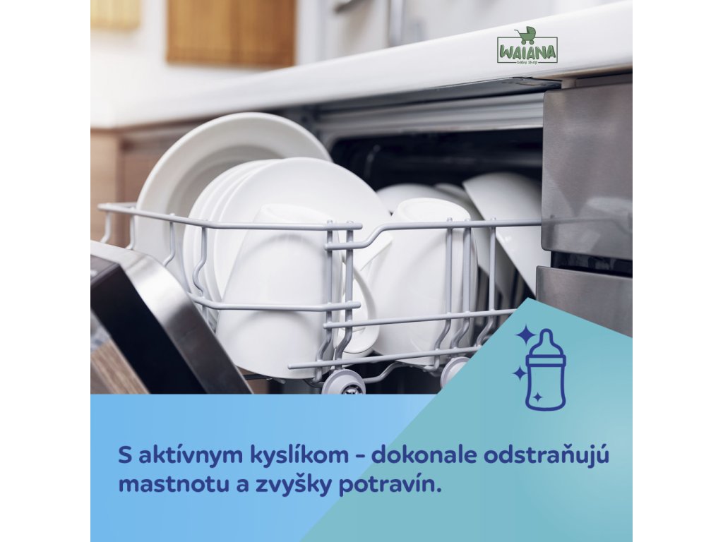 Obsahuje aktívny kyslík – dokonale odstráni zvyšky mlieka a kaše.