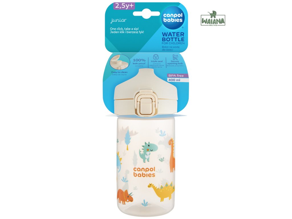 Jednoduché ovládanie jednou rukou – jedno kliknutie a pitie je pripravené! Náustok je navrhnutý tak, aby sa ľahko čistil aj skladoval – bez slamiek a závaží. Fľaša je vhodná do umývačky riadu (odporúčame ekologické tablety do umývačky Canpol babies – k.č. 1/502, bez farbív a parfumácie).