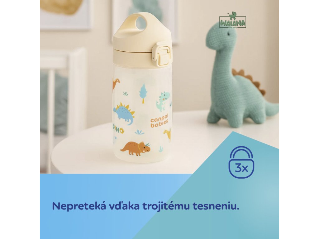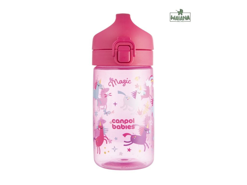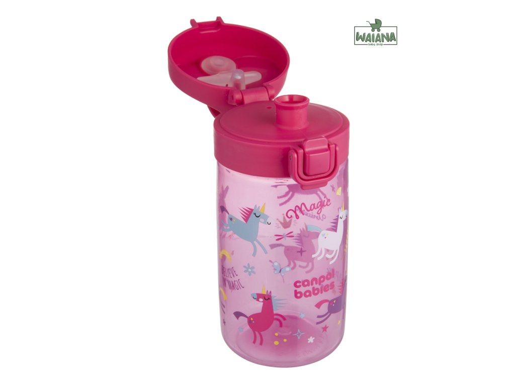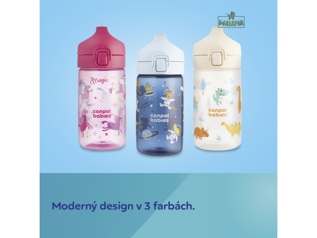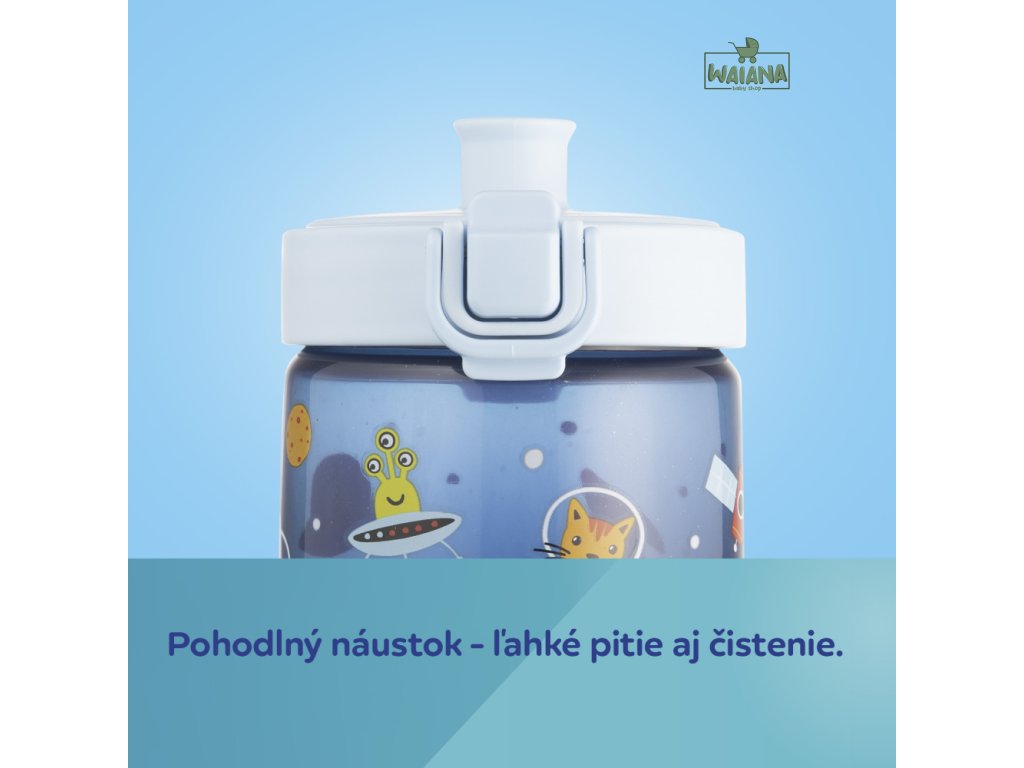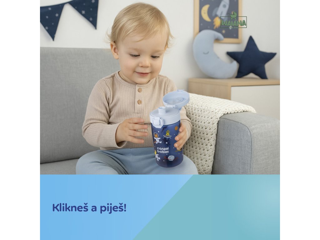 Jednoduché ovládanie jednou rukou – jedno kliknutie a pitie je pripravené! Náustok je navrhnutý tak, aby sa ľahko čistil aj skladoval – bez slamiek a závaží. Fľaša je vhodná do umývačky riadu (odporúčame ekologické tablety do umývačky Canpol babies – k.č. 1/502, bez farbív a parfumácie).