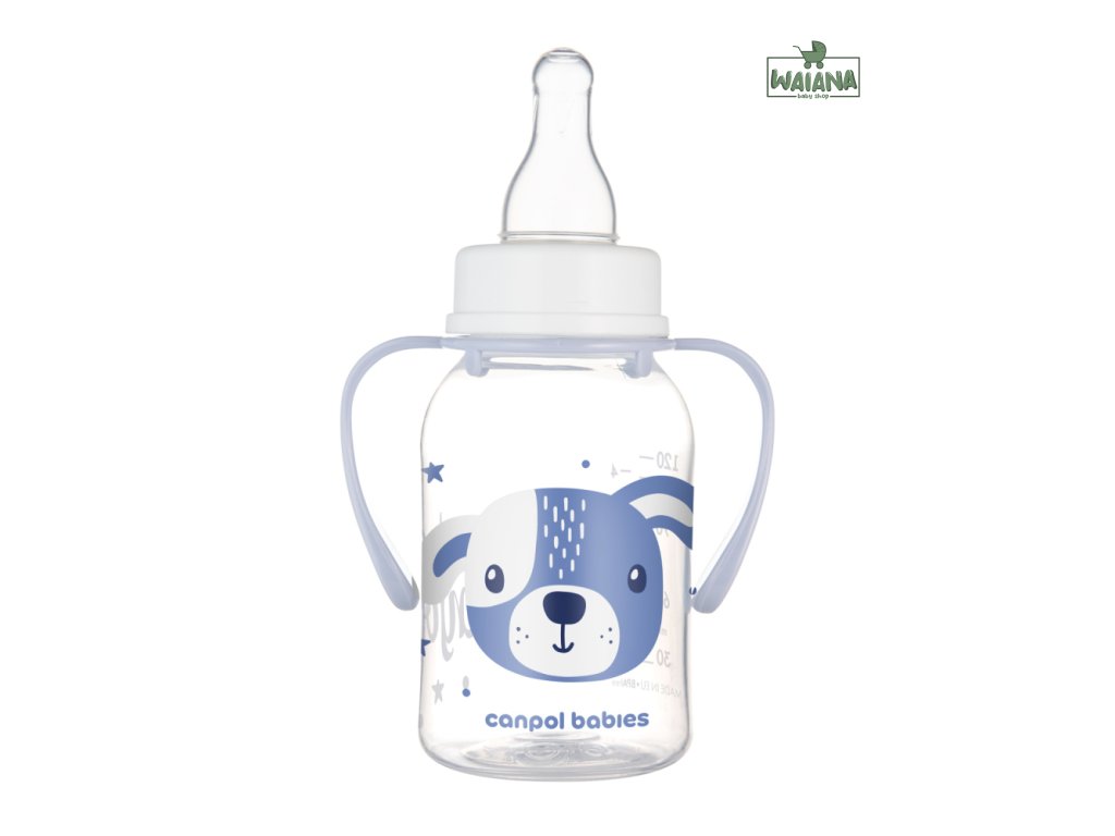 Canpol babies Fľaša úzkohrdlá s úchytmi CUTE ANIMALS 120ml psík