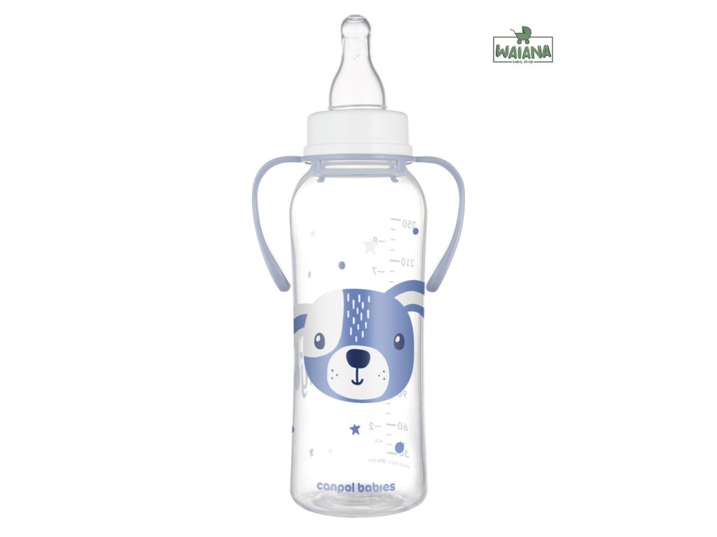 Canpol babies Fľaša úzkohrdlá s úchytmi CUTE ANIMALS 250ml psík