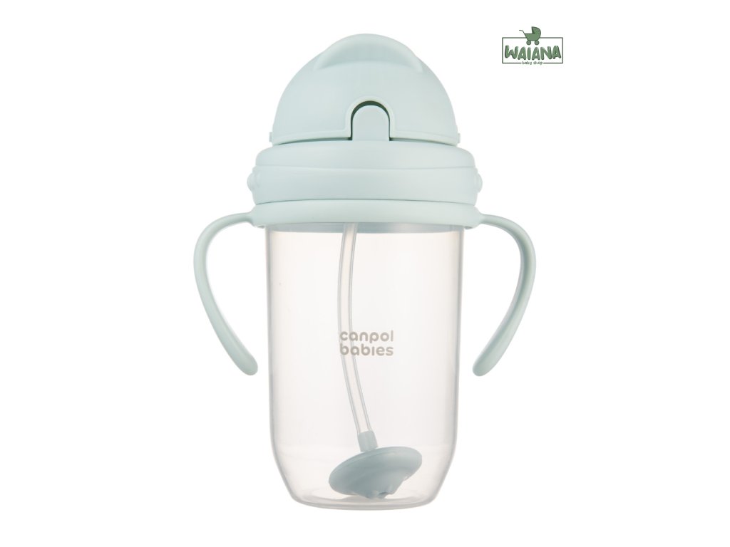 Canpol babies Hrnček nevylievací so slamkou a závažím 270ml zelený