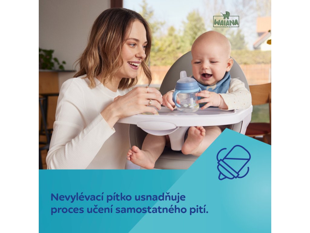 Perfektné riešenie pre učenie sa samostatne piť od 6 mesiacov veku dieťaťa vďaka netečúcemu náustku, ktoré zabraňuje rozliatiu. Náustok je netečúci aj keď dieťa hrnček nakloní alebo pustí.