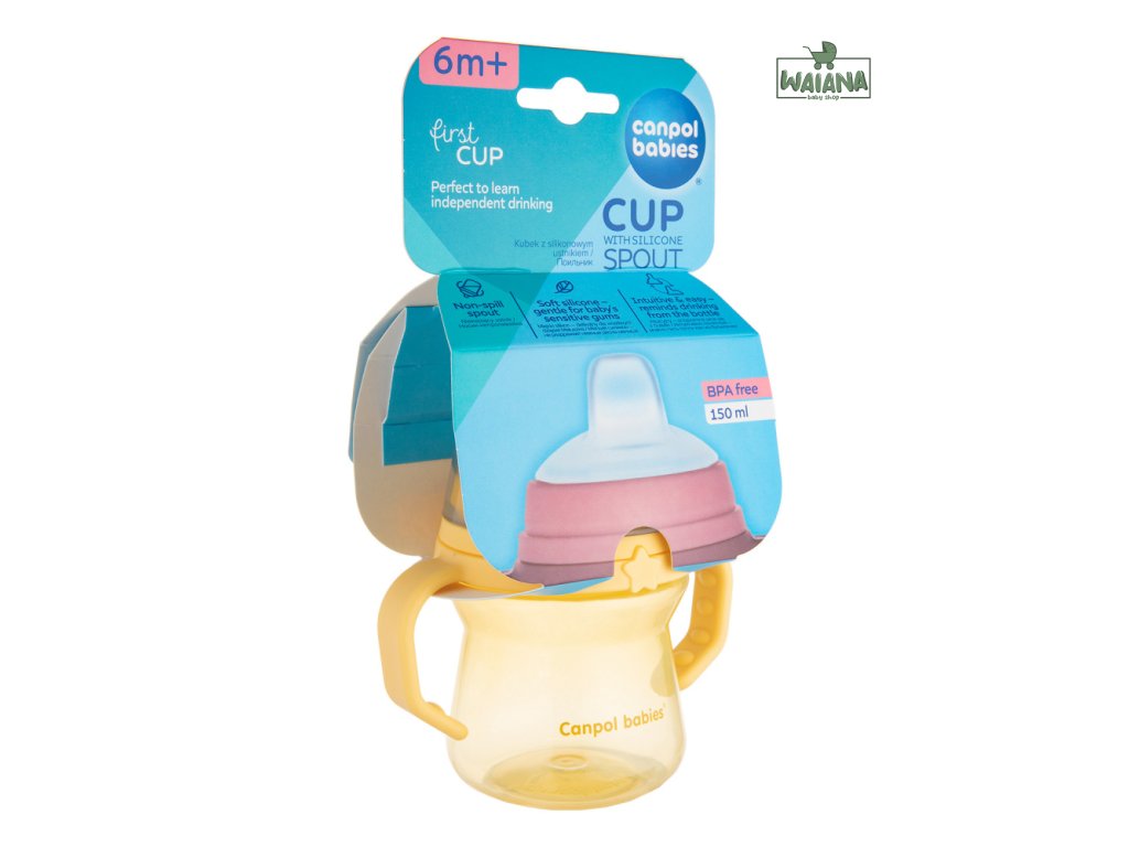 Canpol babies Hrnček so silikónovým náustkom FirstCup 150ml žltý