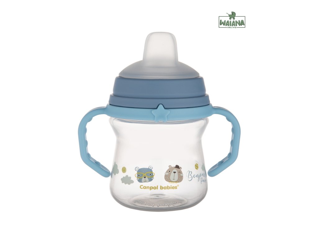 Výnimočne mäkký náustok je vyrobený z jemného silikónu, ktorý je bezpečný pre citlivé ďasná dieťaťa. Hrnček je ľahký a má ergonomickú profilovanú štruktúru. Pohodlné rukoväte uľahčujú držanie hrnčeka v malých detských ručičkách. Malý počet prvkov uľahčuje poskladanie a čistenie – hrnček nemá žiadne zbytočné zákutia, vďaka čomu je možné všetky časti rýchlo umyť. Silikónový náustok je možné tiež sterilizovať parou. Canpol babies netečúci hrnček so silikónovým náustkom v objeme 150 ml je priehľadný, čo umožňuje kontrolovať množstvo tekutiny prijímané dieťaťom.