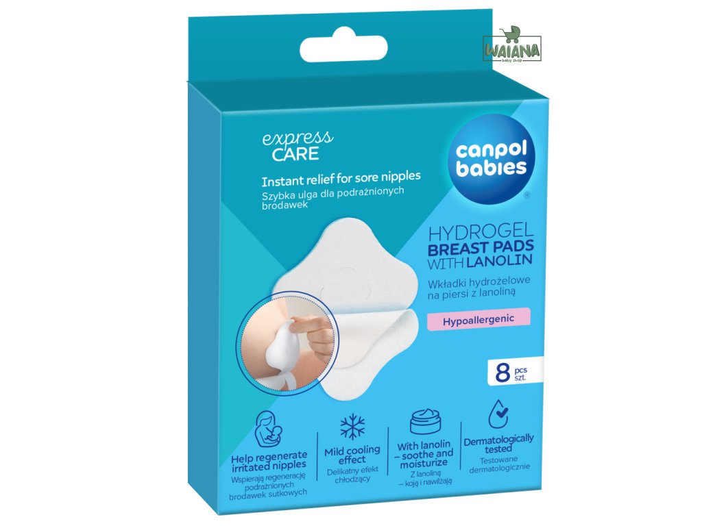 Mäkké hydrogélové prsné vankúšiky Canpol babies s lanolínom ponúkajú upokojujúci účinok na boľavé bradavky. Podporujú regeneráciu pokožky a zároveň obnovujú prirodzenú vlhkosť tak, aby ste mohli pokračovať v dojčení. Slúži aj ako ďalšia ochranná vrstva pre citlivé bradavky, zabraňujú podráždeniu z odevu, najmä pri hojení poranení. S jemným chladivým účinkom prinášajú okamžitý pocit úľavy, upokojujú poškodenú pokožku bradaviek a zaisťujú optimálne podmienky na hojenie a regeneráciu. Vďaka jednoduchému zloženiu sú hydrogélové prsné vankúšiky Canpol babies netoxické a neobsahujú žiadne konzervačné látky. Ideálne na použitie ako obklad medzi jednotlivým dojčením. Ľahko a bez bolesti sa dajú zložiť z kože. Po aplikácii na prsia sa prsné vankúšiky nepohnú, nerolujú sa, nešpinia spodnú bielizeň a nezanechávajú na oblečení žiadne mokré škvrny. Balenie obsahuje 4 vrecká, po 2ks prsných vankúšikov. Pre vašu bezpečnosť ho používajte tak, ako je uvedené v návode alebo na štítku. V prípade pochybností sa poraďte s odborníkom.