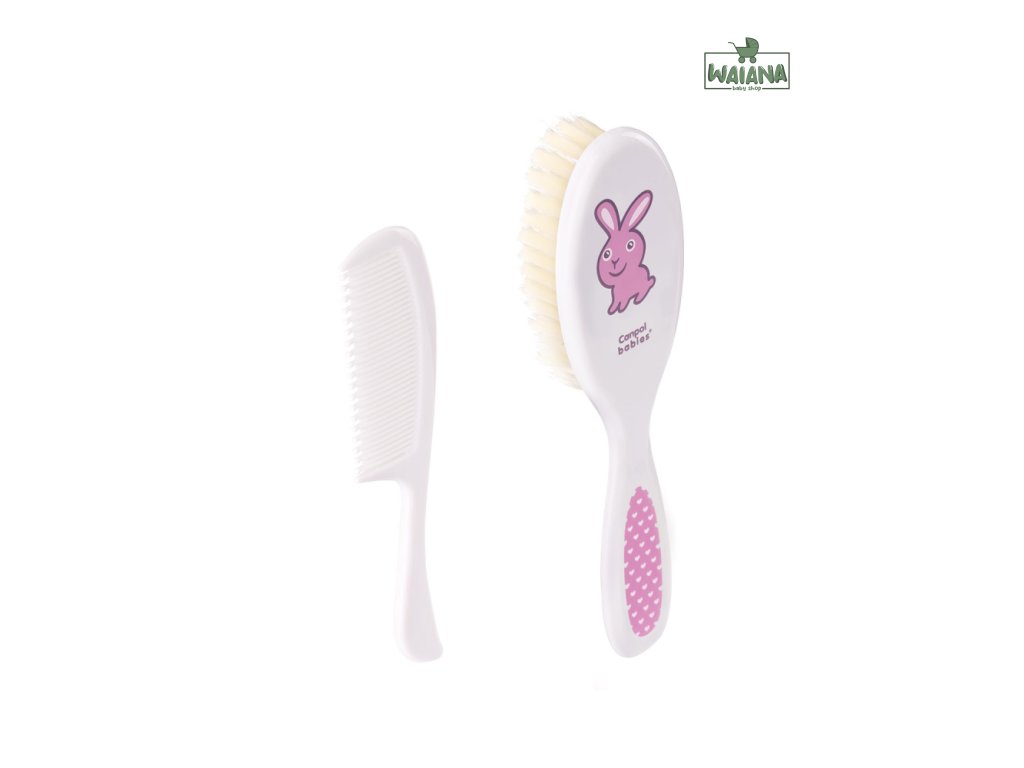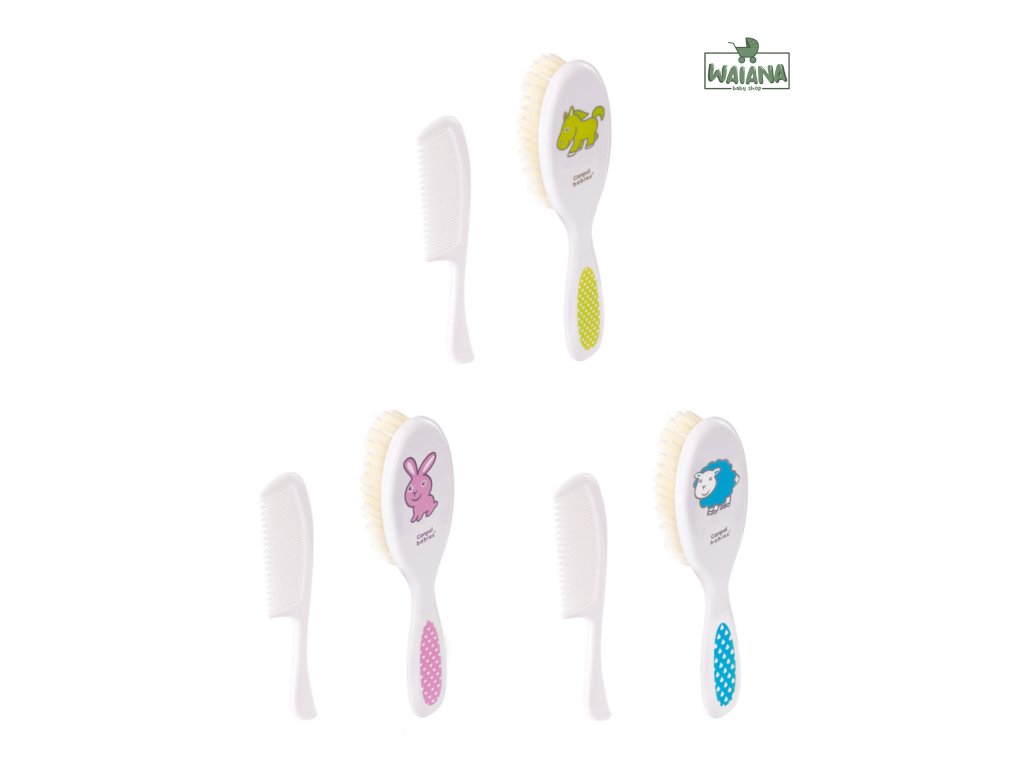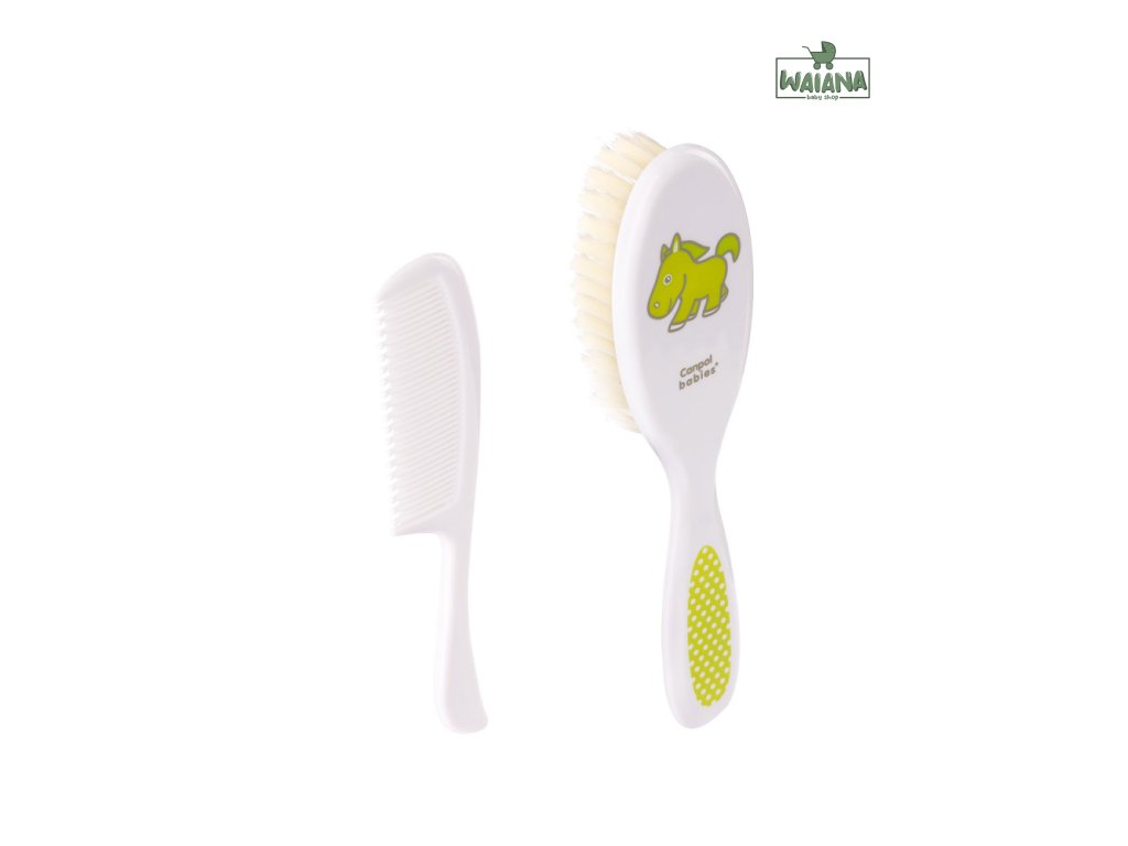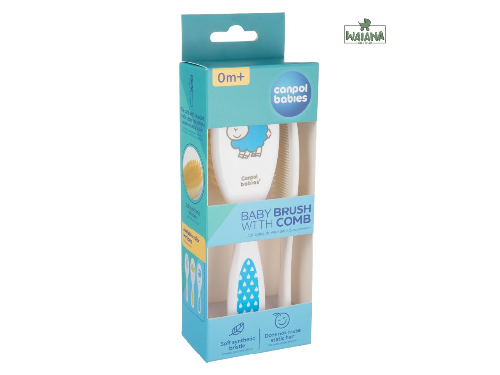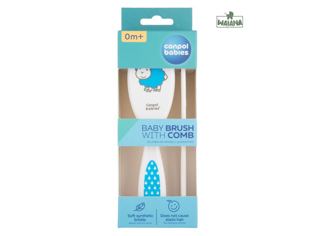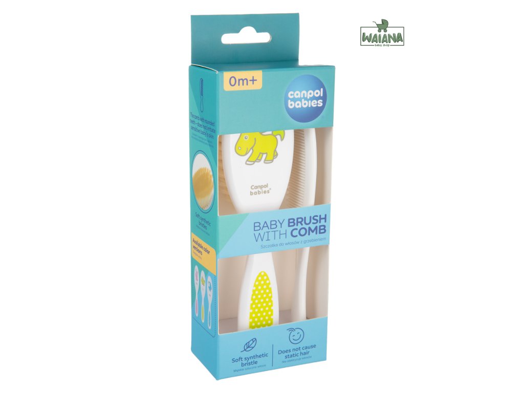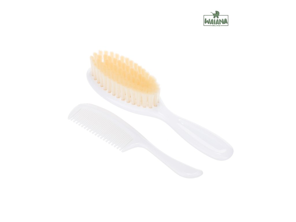 Kefa na vlasy s hrebeňom na každodennú starostlivosť o vlasy dieťaťa. Hrebeň má zaoblené zuby, ktoré nedráždia citlivú pokožku dieťaťa. Kefa s jemnými umelými štetinami jemne masíruje hlavu dieťaťa bez elektrizovania vlasov.
