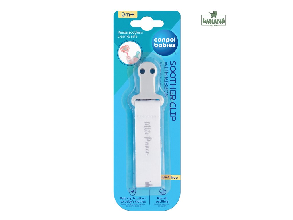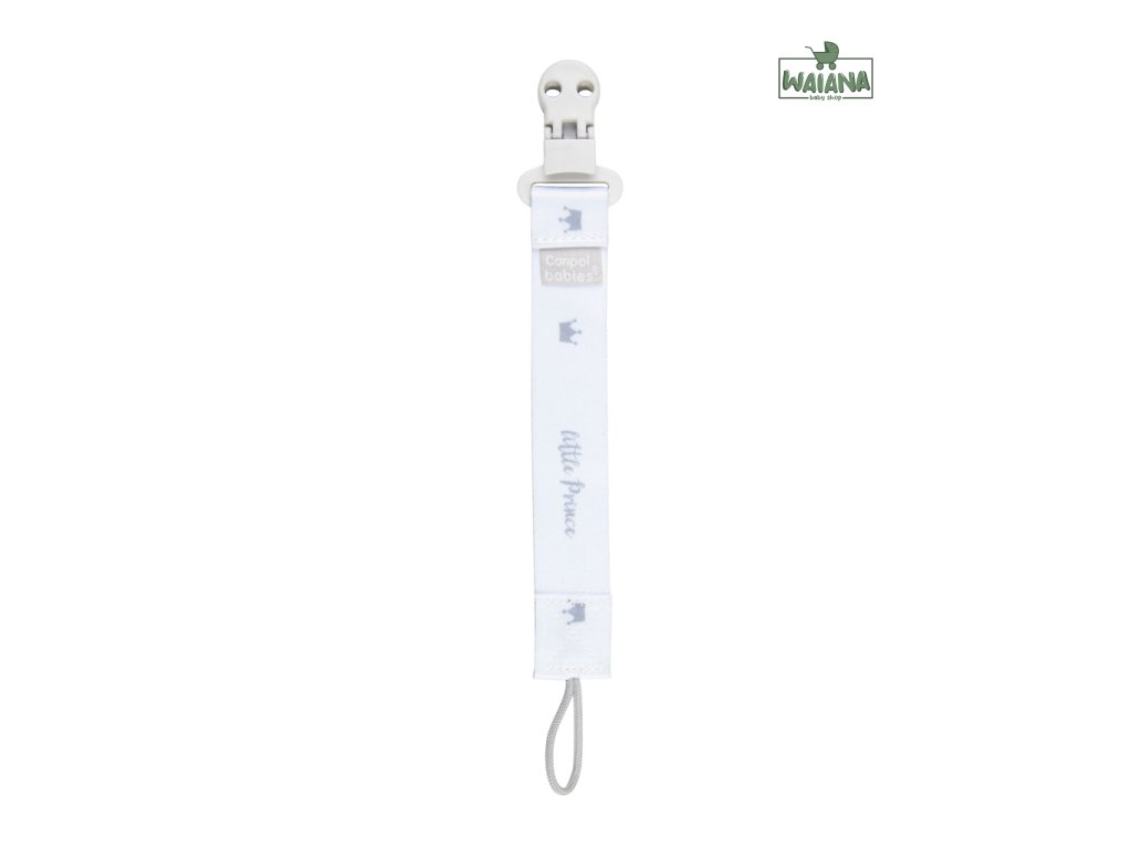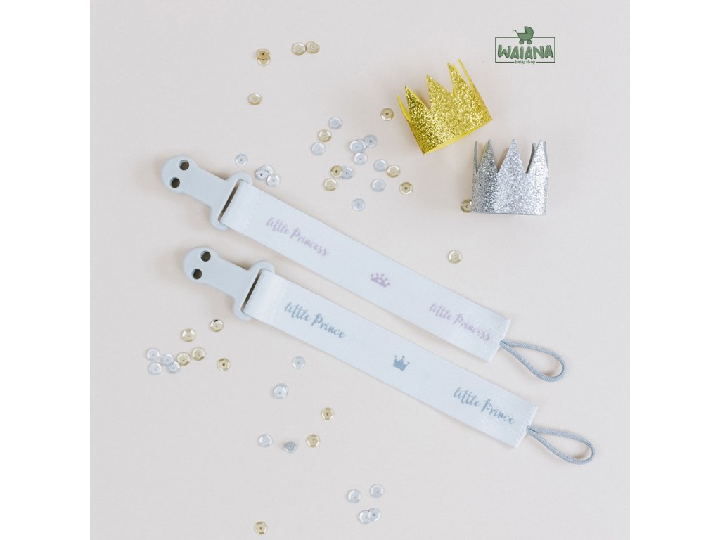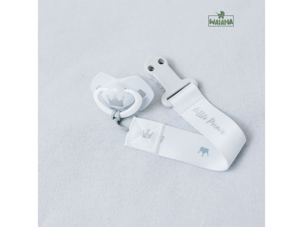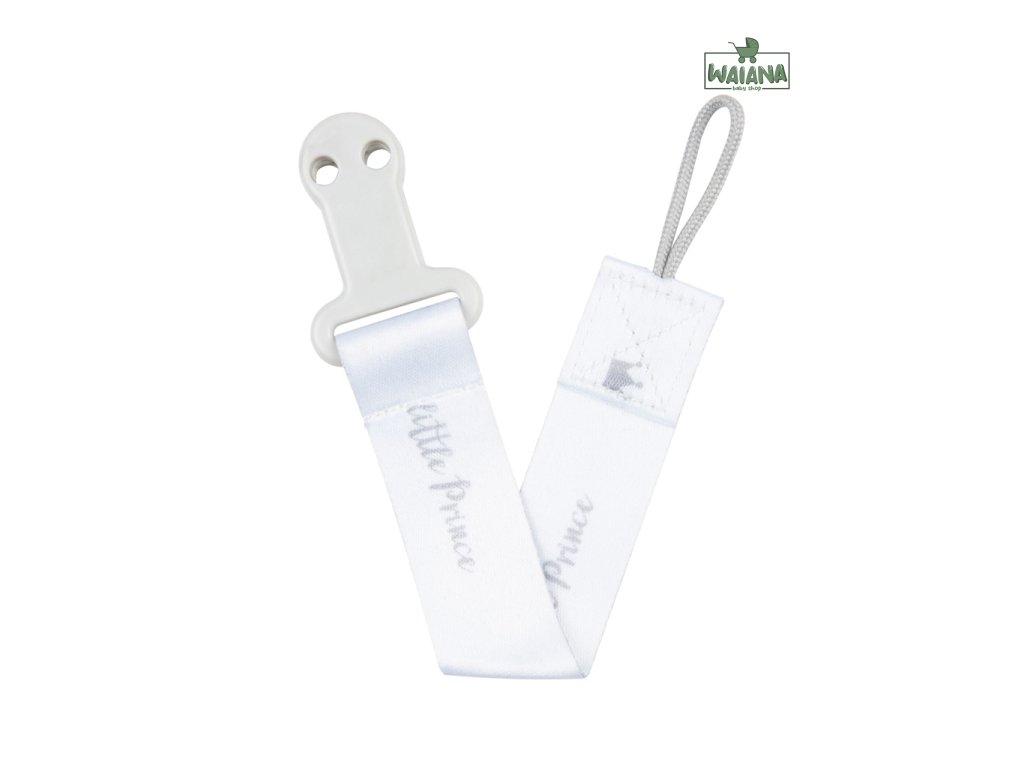 Štýlový doplnok z kolekcie ROYAL BABY je praktickým doplnkom každého dieťatka. Látková stužka s klipom slúži k pevnému a stabilnému pripevnenie cumlíka k oblečeniu bábätka a chráni tak cumlík pred ušpinením alebo stratou.