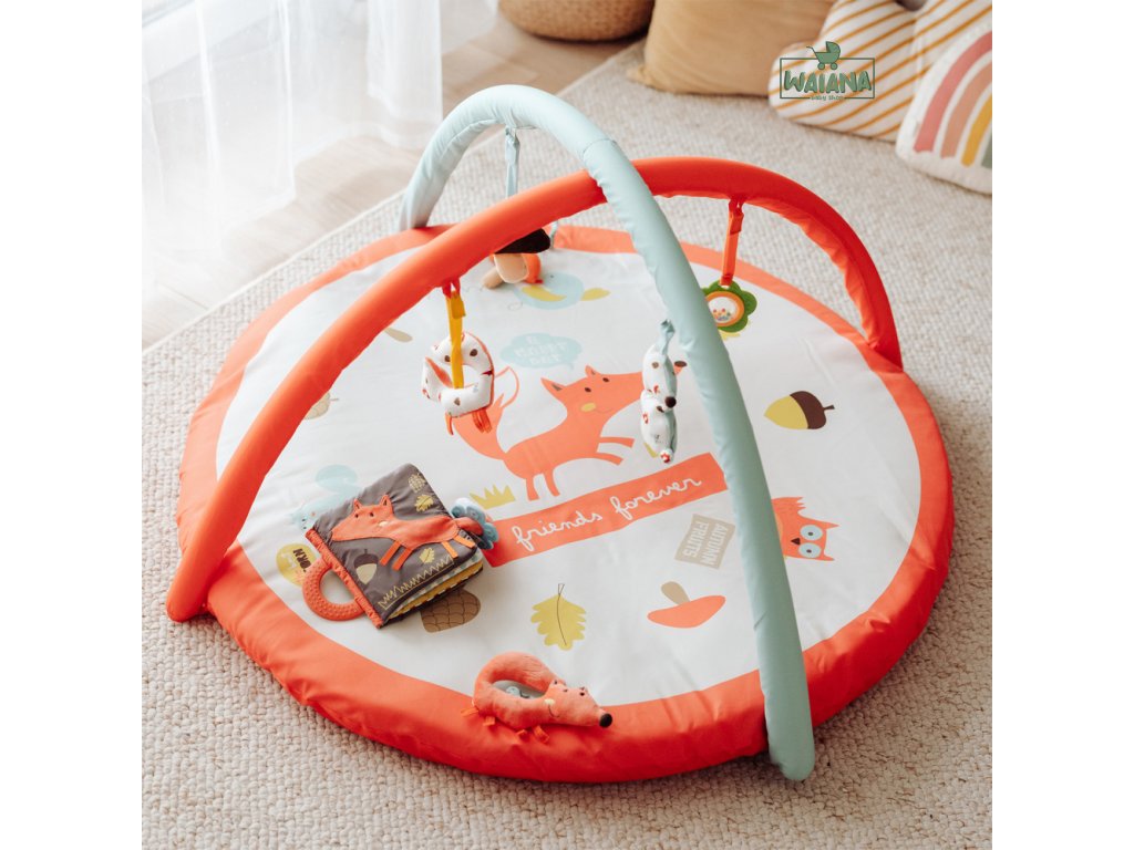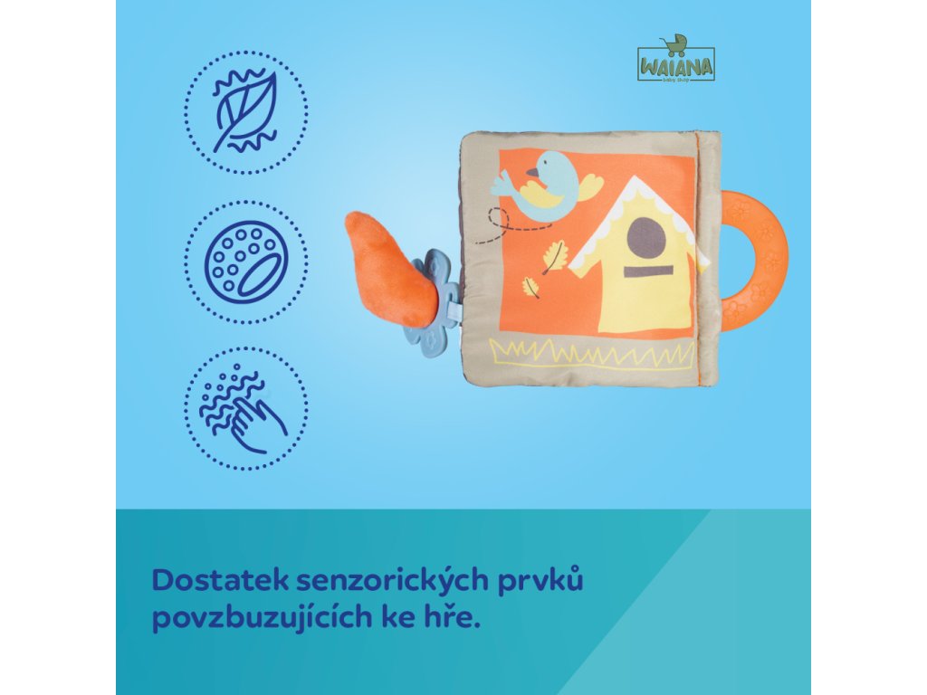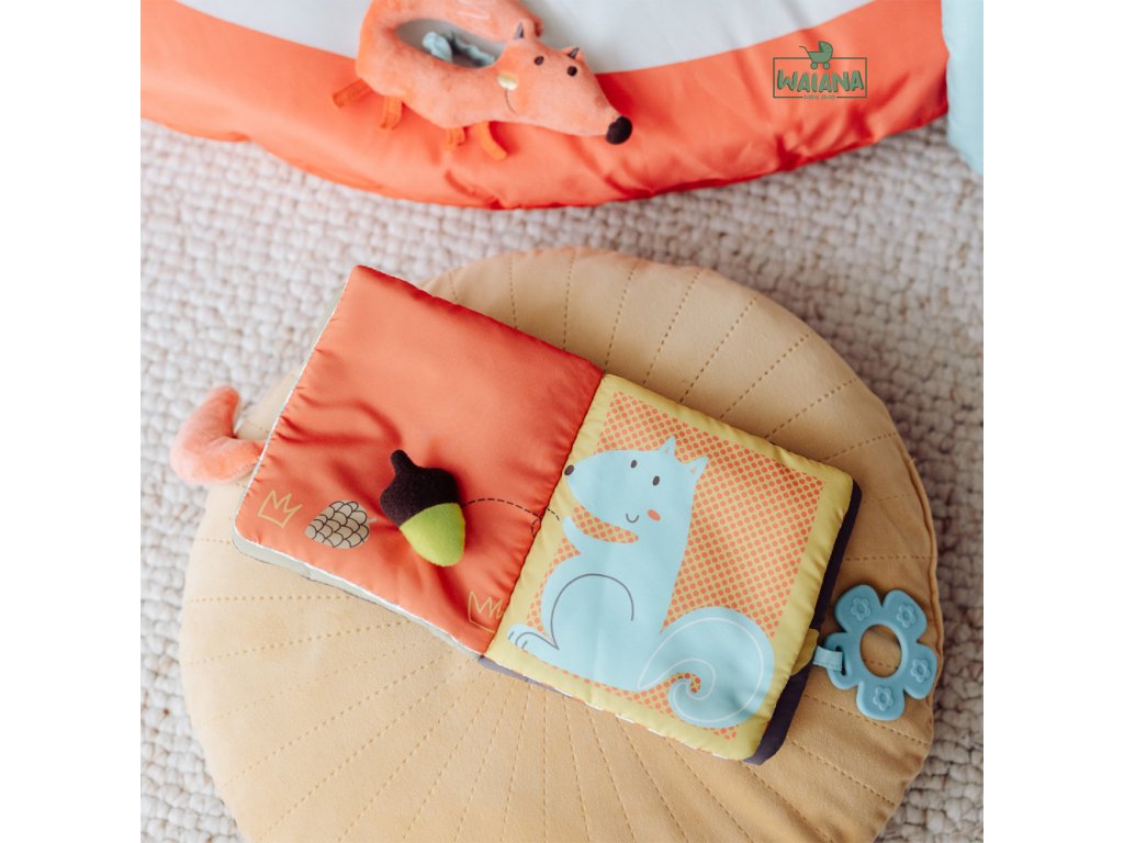 Náučná plyšová knižka FOX je perfektné prvé čítanie pre vašich najmenších. Kniha má mnoho zmyslových prvkov, ktoré povzbudzujú k hre a podporujú rozvoj zmyslov od prvých okamihov života. Šuštiace prvky stimulujú sluch a rôzne textúry stimulujú hmat. Ohybné, flexibilné a mäkké hryzátka prinesú vášmu bábätku úľavu v období prerezávania zúbkov, masírujú ďasná a upokojujú svrbenie spôsobené prerezávaním zúbkov. Kniha podnecuje detskú zvedavosť a podporuje nácvik manuálnych zručností a koordinácie ruka-oko. Plyšová knižka pre deti je skvelý spôsob ako sa hrať poležiačky na brušku a stráviť s dieťaťom kvalitný čas zábavy.