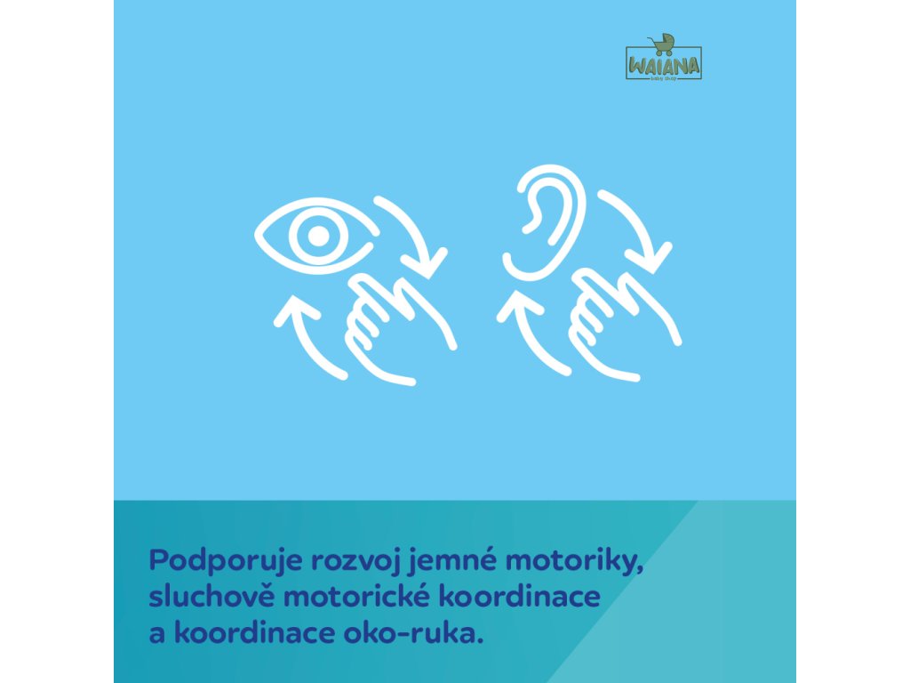 - Podporuje rozvoj koordinácie oko-ruka, jemnej motoriky a sluchovo motorickej koordinácie.