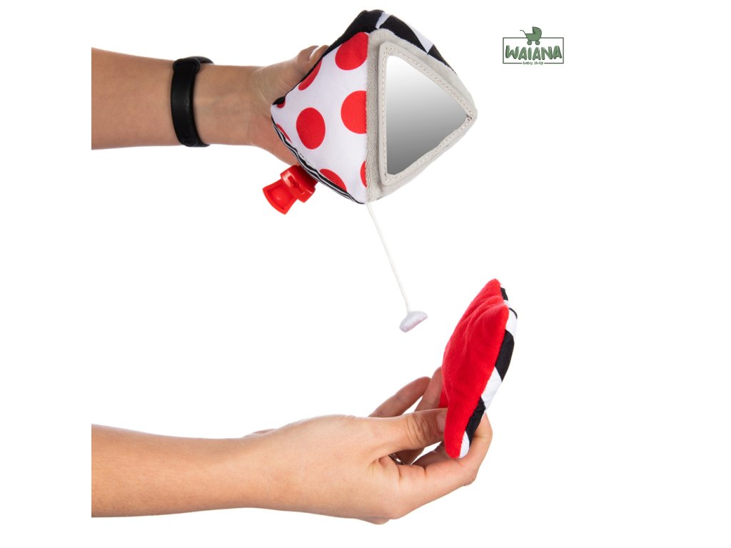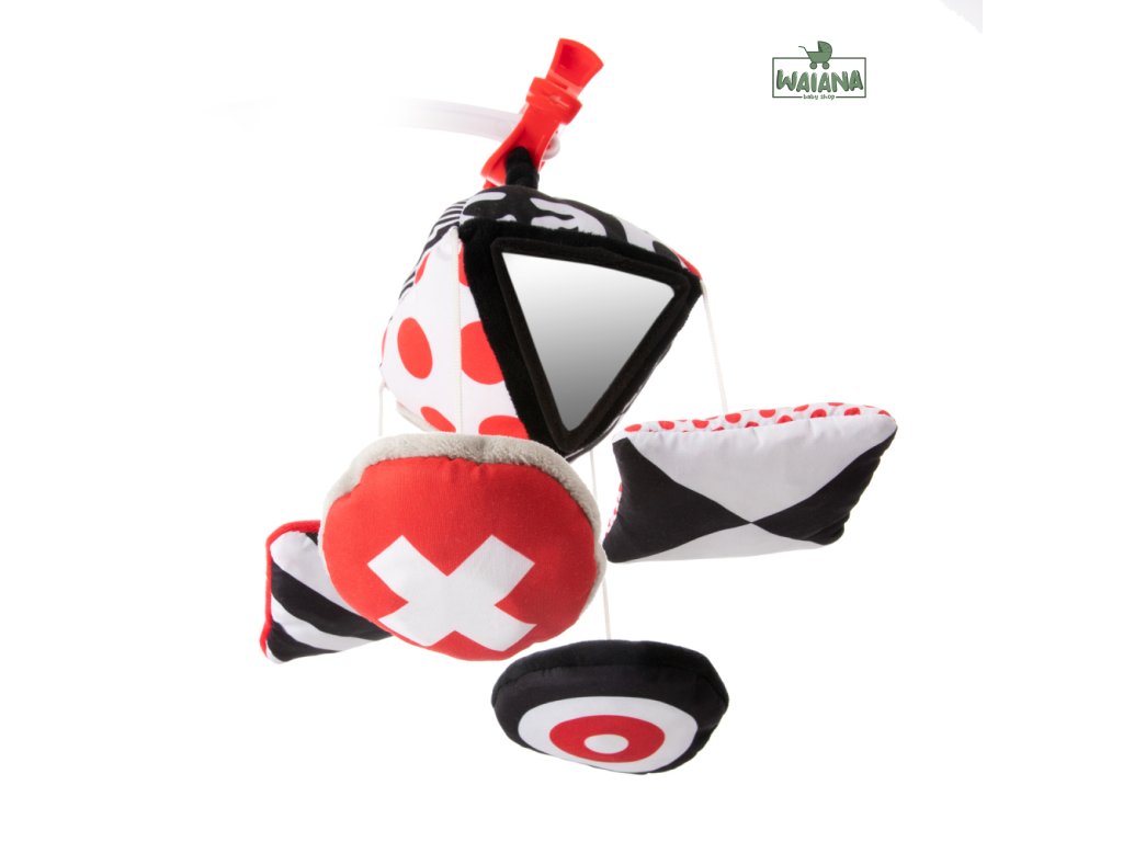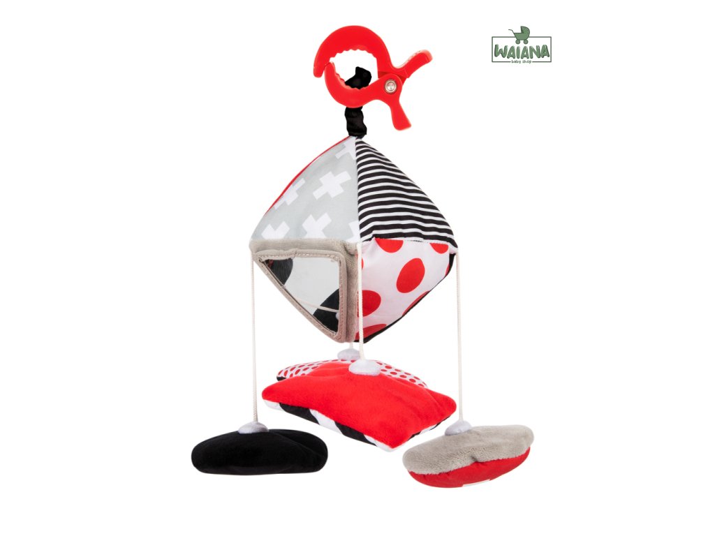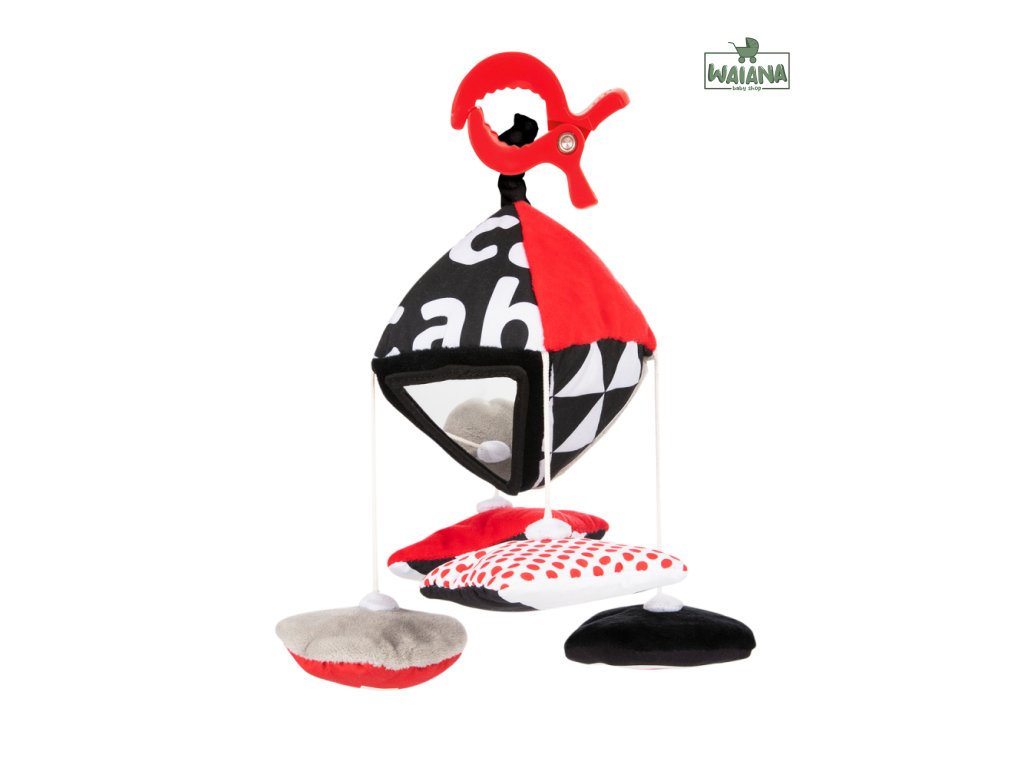 Kontrastní závěsná hračka s klipem z kolekce SENSORY je určená už pre najmenšie deti. Hračku je možné pomocou klipu pripevniť na požadované miesto - kočík, postýlku alebo autosedačku. Praktický doplnok disponuje šustícími a zvoniacimi prvkami, dvoma zrcátkami, chrastítkom a odnímateľnými plyšovými prvkami so špeciálnym magnetom. Senzorické barvy stimulují rozvoj zmyslů dítěte.